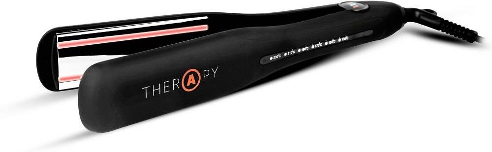 Prostownica Therapy posiada technologię podczerwieni, która pielęgnuje i regeneruje włosy. Podczerwień pozwala na ogrzanie włosów od wewnątrz, pomagając w naprawie rozdwojonych końcówek. TECHNOLOGIA PODCZERWIENI Jej innowacyjny system wytwarza równomierne ciepło, zapewniając, szybko widoczne rezultaty, skraca czas kontaktu prostownicy z włosami. CHARAKTERYSTYKA TECHNICZNA Szybkie nagrzewanie maksymalna temperatura w 3 minuty Cyfrowy wyświetlacz LCD Regulacja temperatury od 130 st do 230 st Płytki łączące technologię tytanową, ceramiczną i podczerwieni. Szerokie płytki 40 mm, pływająca płytka ceramiczna. Automatyczne wyłączanie. Ultraszybka i odporna grzałka PTC. Przewód zasilający o długości 2,8 m z obrotowym kablem 360º Ergonomiczny styl. Płytki o zaokrąglonych krawędziach, idealne do tworzenia loków i fal Mata ochronna w komplecie.