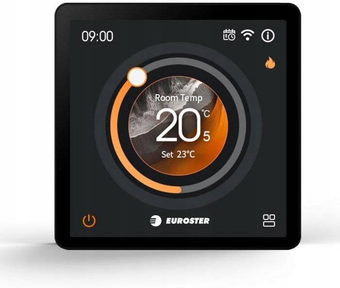 Regulator Temperatury EUROSTER E2233 SMART 230V WiFi Bezprzewodowy PRODUCENT: Euroster INDEKS: 25330 ____________________________________________________ Nowoczesny regulator temperatury EUROSTER E2233 SMART to połączenie funkcjonalności, precyzji i nowoczesnego designu . Dzięki wbudowanemu modułowi Wi-Fi oraz obsłudze przez aplikację mobilną, zyskujesz pełną kontrolę nad ogrzewaniem — z dowolnego miejsca na świecie . Pełna kontrola temperatury z poziomu smartfona Komfort cieplny dopasowany do rytmu dnia Oszczędność energii dzięki inteligentnemu harmonogramowi Elegancki design pasujący do nowoczesnych wnętrz Prosty montaż i intuicyjna obsługa Niezawodna łączność Wi-Fi bez dodatkowych modułów 💡 Odkryj, co wyróżnia EUROSTER E2233 SMART Sterowanie przez dedykowaną aplikację mobilną (iOS / Android) Obsługuj temperaturę w domu w kilka sekund — z poziomu swojego smartfona lub tabletu. Intuicyjna aplikacja w języku polskim pozwala zmieniać ustawienia, programować tryby i monitorować temperaturę w czasie rzeczywistym. Wbudowany moduł Wi-Fi – bez bramek i dodatkowych urządzeń Sterownik łączy się bezpośrednio z domową siecią — bez konieczności kupowania dodatkowych modułów. Oszczędzasz czas, pieniądze i miejsce. Duży, kolorowy ekran dotykowy Czytelny wyświetlacz zapewnia intuicyjną obsługę i szybki dostęp do wszystkich funkcji. Idealnie wpasuje się w nowoczesne wnętrza — elegancki design w kolorze czarnym podkreśla styl Twojego domu. Programowanie tygodniowe – aż 6 poziomów temperatury na dobę Ustaw harmonogram dostosowany do swojego trybu życia. Regulator automatycznie dopasuje temperaturę, zapewniając ciepło, kiedy jesteś w domu, i oszczędność, gdy Cię nie ma. Tryby pracy i funkcje SMART Dostępne opcje, takie jak chwilowa nastawa temperatury, tryb wakacyjny czy temperatura stała , gwarantują wygodę w każdej sytuacji. Po zakończeniu sezonu grzewczego możesz dezaktywować regulator jednym kliknięciem. Precyzyjna kalibracja i korekta wskazań temperatury Masz pełną kontrolę nad dokładnością pomiarów — system umożliwia regulację odczytów według rzeczywistych warunków. Montaż podtynkowy – idealne dopasowanie do wnętrza Urządzenie przeznaczone jest do montażu w standardowej puszce Ø60, zasilane bezpośrednio z sieci 230 V. Dzięki temu instalacja jest czysta, estetyczna i trwała. Specyfikacja techniczna Model: EUROSTER E2233 SMART Rodzaj: Regulator temperatury pokojowy, Wi-Fi Sterowanie: aplikacja mobilna (iOS, Android) Wyświetlacz: kolorowy ekran dotykowy Zasilanie: 230 V / 50-60 Hz Programowanie: 7-dniowe, 6 poziomów temperatury na dobę Tryby pracy: manualny, automatyczny, wakacyjny, chwilowa nastawa Funkcje dodatkowe: korekta wskazań, funkcja OFF po sezonie, rejestr temperatur Montaż: podtynkowy, w puszce Ø60 mm Kolor: czarny Łączność: wbudowane Wi-Fi (bez bramek pośrednich) 🏡 EUROSTER E2233 SMART – nowoczesna wygoda, którą docenisz każdego dnia. Zarządzaj temperaturą domu z dowolnego miejsca — oszczędzaj energię i ciesz się idealnym komfortem cieplnym przez cały rok. Parametry techniczne produktu Stan: Nowy Kod produktu: EUR_E2233SMARTB Kolor: czarny Najważniejsze cechy: bezprzewodowy, Maksymalne obciążenie: 3(2)A 230 V 50 Hz, Wyjście regulatora - przekaźnikowe, beznapięciowe, SPST , - przekaźnikowe napięciowe wyjście 230V, Zakres pomiaru temperatury: od 0°C do +70°C, Zakres regulacji temperatury: od +5°C do +70°C, Dokładność regulacji temperatury: 0,1°C, Dokładność wskazań temperatury: 0,1°C, Zakres histerezy: od 0,2°C do 5°C ze skokiem 0,2°C, Parametry WiFi: 2,4 Ghz 802.11 b/g/n Napięcie (V): 230 V 50 Hz