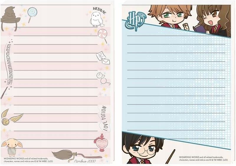 mix wzorów wysyłanych losowo Notes A6 posiada 80 kartek z kolorowym poddrukiem. Grzbiet klejony po krótszym boku. Charakteryzuje się estetycznym wykończeniem i modną okładką z serii Harry Potter