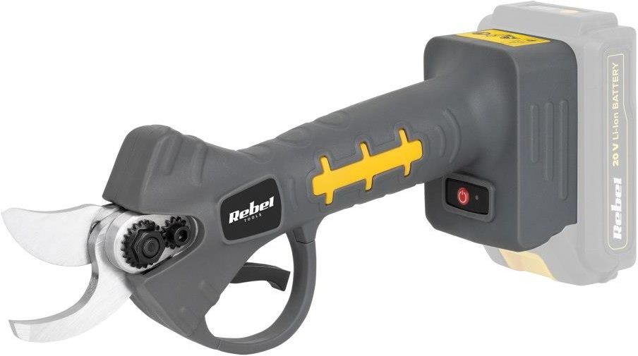 Sekator akumulatorowy Rebel Tools Sekator akumulatorowy Rebel Tools to idealne narzędzie dla każdego ogrodnika i właściciela zielonych przestrzeni. Pozwala na szybkie i precyzyjne przycinanie krzewów, gałęzi i roślin ozdobnych bez wysiłku fizycznego. Dzięki lekkiej konstrukcji i ergonomicznej rękojeści praca staje się komfortowa, a regulowana szerokość robocza umożliwia dopasowanie cięcia do różnych średnic gałęzi. Ergonomiczna rękojeść Sekator Rebel Tools został zaprojektowany z myślą o wygodzie użytkownika. Ergonomiczna rękojeść zapewnia pewny chwyt, zmniejsza zmęczenie dłoni podczas długotrwałej pracy i pozwala na precyzyjne manewrowanie narzędziem nawet w trudno dostępnych miejscach. Komfort pracy jest szczególnie istotny przy intensywnym przycinaniu krzewów i roślin ozdobnych. Regulowana szerokość robocza Sekator umożliwia dostosowanie szerokości cięcia w zależności od grubości gałęzi. Regulacja robocza pozwala na elastyczne dopasowanie pracy do różnych gatunków roślin, co zwiększa uniwersalność narzędzia i umożliwia dokładne przycinanie zarówno delikatnych pędów, jak i grubych gałęzi. Ostrze ze stali Ostrze sekatora Rebel Tools wykonane jest z wysokiej jakości stali SK5, co zapewnia wyjątkową trwałość i odporność na ścieranie. Dzięki precyzyjnie szlifowanej krawędzi cięcie jest szybkie i dokładne, nawet przy grubych gałęziach do 25 mm. Ostrze utrzymuje ostrość przez długi czas, umożliwiając efektywną i komfortową pracę w ogrodzie. Lekka i kompaktowa konstrukcja Niewielka waga sekatora oraz kompaktowe wymiary sprawiają, że urządzenie jest łatwe w obsłudze i przenoszeniu. Dzięki temu użytkownik może pracować w różnych miejscach ogrodu bez uczucia ciężaru, a precyzyjne cięcia stają się znacznie prostsze, nawet przy dłuższym czasie użytkowania.