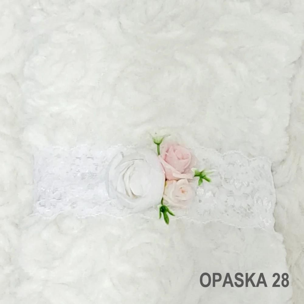 OPASKA DO CHRZTU dla dziewczynki biała OPASKA USZYTA PRZEZ NAS Z NAJLEPSZEJ JAKOŚCI BARDZO MIŁEJ I PRZYJEMNEJ W DOTYKU GUMOWANEJ ELASTYCZNEJ KORONKI POLECANA NA LATO, PÓŹNĄ WIOSNĘ I WCZESNĄ JESIEŃ OPASKA ELEGANCKO WYKOŃCZONA I OZDOBIONA WDZIĘCZNYMI, PIĘKNYMI KOLOROWYMI KWIATKAMI. Tkanina poliester 100 %. Obwód głowy rozmiar 56 36 - 38 cm, rozmiar 62 38 - 40 cm, rozmiar 68 40 - 42 cm, rozmiar 74 42 - 44 cm, rozmiar 80 44 - 46 cm, rozmiar 86 46 - 48 cm DO OPASKI IDEALNIE PASUJE SUKIENKA, BOLERKO, SWETEREK,TOREBKA, PŁASZCZ I BUCIKI KTÓRE MOŻNA KUPIĆ ODDZIELNIE. WSZYSTKO WYKONANE Z WIELKĄ STARANNOŚCIĄ I DBAŁOŚCIĄ O SZCZEGÓŁY. PERFEKCYJNIE WYKOŃCZONE.