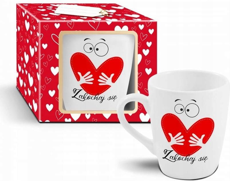 Kubek ceramiczny z serduszkiem. Pojemność: 300 ml. Zapakowany w ozdobny kartonik.