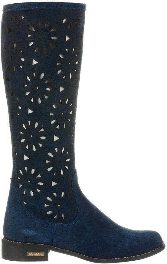 Damskie kozaki ażurowe granatowe - Granat Radzyń Podlaski