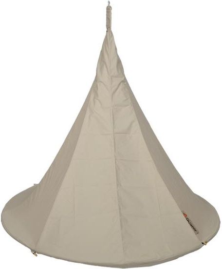 Drzwi do zabezpieczenia Namiotu wiszącego dwuosobowego ścisło dopasowane tworzą barierę wodną jak też ochronę przed wszystkim co może nam przeszkodzić w relaksie. Drzwi do Namiotu wiszącego, Dwuosobowego wykonane są w 65% poliester i 35% bawełna. Materiał odporny jest na warunku atmosferyczne UV, wodę, pleśnie i bakterie. Drzwi mocujemy na wierzchy Namiotu, od dołu łączymy je z oczkami Namiotu.