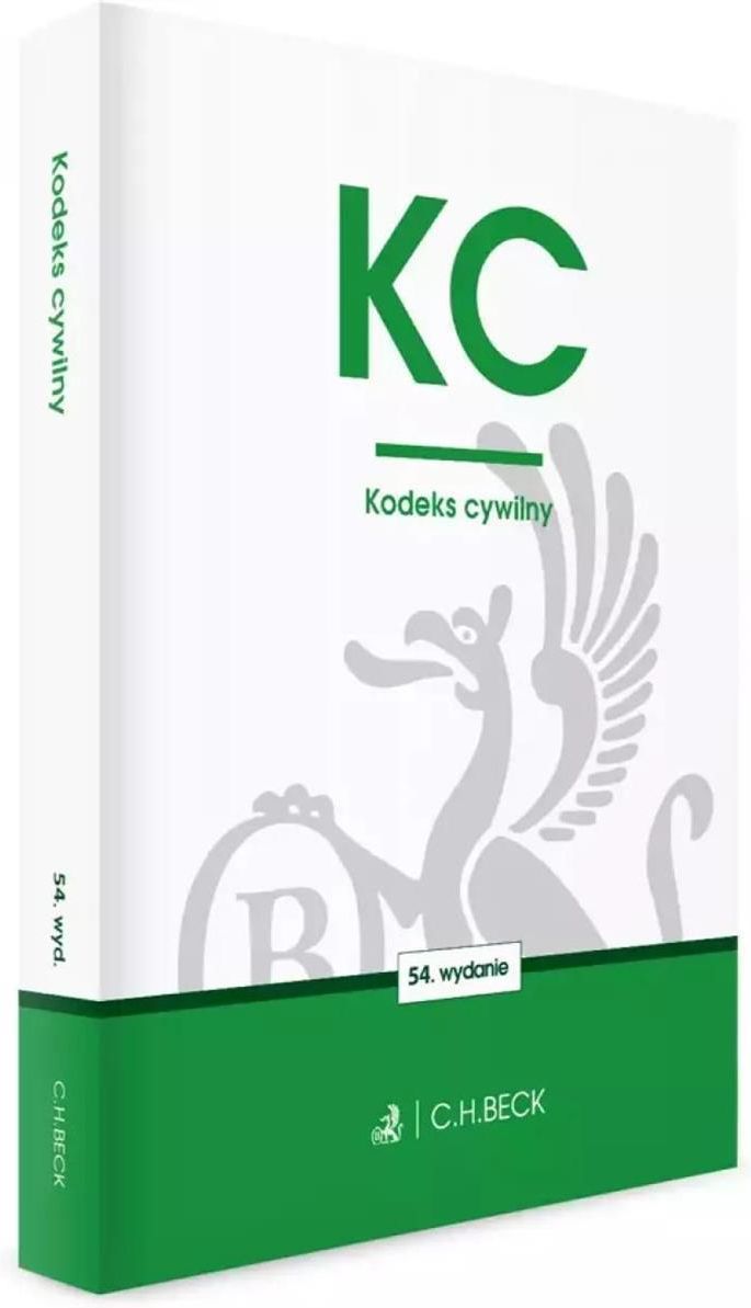 KC. Kodeks cywilny. Wydanie 54 (książka) Autor: praca zbiorowa Wydawnictwo: C.H. Beck Rok wydania: 2024 Oprawa: miękka Liczba stron: 256 Format: 12,2 x 17,5 cm Numer ISBN: 9788383566351 Kod paskowy (EAN): 9788383566351 Książka "KC. Kodeks cywilny. Wydanie 54" - opis Stan prawny: 1 września 2024 r. Zbiór uwzględnia zmiany wchodzące w życie: - Nowy tekst jednolity z dnia 21 czerwca 2024 r. (Dz.U. z 2024 r. poz. 1061), - 29.8.2024 r. - Ustawa o zmianie ustawy o dochodzeniu roszczeń w postępowaniu grupowym oraz niektórych innych ustaw z dnia 24 lipca 2024 r. (Dz.U. z 2024 r. poz. 1237). Książka zawiera: - Tekst ustawy Kodeks cywilny z dnia 23 kwietnia 1964 r. (Dz.U. Nr 16, poz. 93), - Indeks rzeczowy.