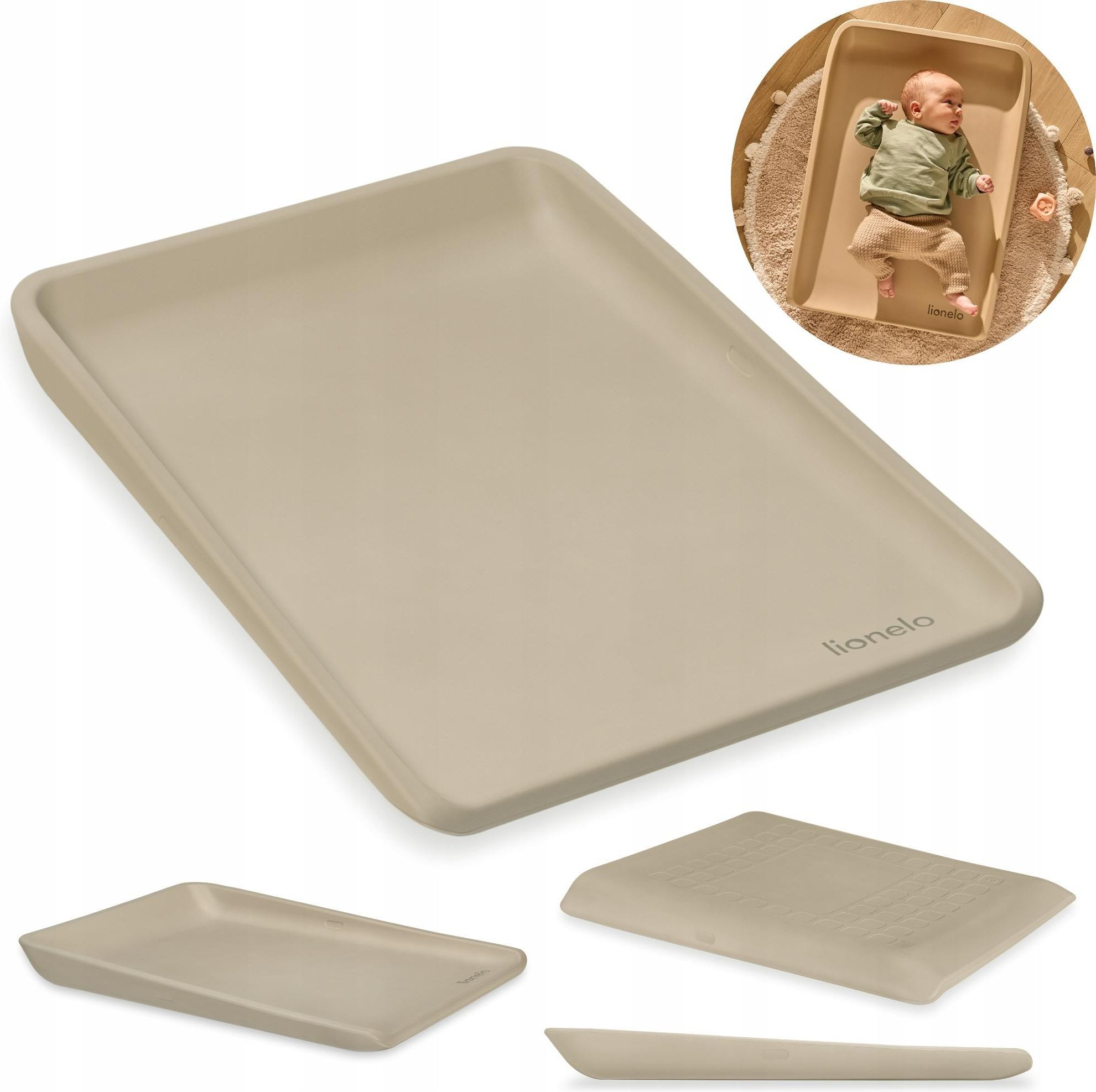 Przewijak nakładka na komodę miękki WODOODPORNY antypoślizgowy, mata ok. 50x70 cm bezpieczny Lionelo Megs Przewijak Lionelo Megs 70×49×7 cm Wielofunkcyjna mata 2w1 – przewijanie, masaż, ubieranie i zabawa Wymiary 70×49×7 cm – pasuje do przewijaków 50×70 cm Wyprofilowane boki – ochrona główki przed uderzeniem o kanty i twarde powierzchnie Wodoodporny materiał PU – łatwy w czyszczeniu, wystarczy przetrzeć wilgotną szmatką Miękka pianka PU – przyjemna dla skóry, szybko przyjmuje temperaturę otoczenia Antypoślizgowe wytłoczenia – stabilność na pralce, komodzie czy przewijaku Odpowiednia twardość – prawidłowe podparcie kręgosłupa dziecka Bezpieczny od 1. dnia życia – zgodny z normą EN71-3, wolny od substancji szkodliwych Wielofunkcyjna mata do przewijania Przewijak Lionelo Megs o wymiarach 70×49×7 cm to praktyczne rozwiązanie dla rodziców. Doskonale sprawdza się jako mata do przewijania, masażu, ubierania czy zabawy.Chroni dziecko przed zimną i twardą powierzchnią. Pasuje do standardowych przewijaków o rozmiarze 50×70 cm. Bezpieczna główka – ochrona boków Mata posiada wyższe i odpowiednio wyprofilowane boki, które chronią główkę dziecka przed uderzeniem. Idealnie sprawdzi się przy przewijakach z drewnianymi bokami, ostrymi krawędziami czy podczas użytkowania na pralce lub komodzie. Wodoodporna i łatwa w czyszczeniu Przewijak został wykonany z pianki PU, która jest wodoodporna, higieniczna i wyjątkowo łatwa w pielęgnacji. Wystarczy przetrzeć powierzchnię wilgotną szmatką, aby utrzymać przewijak w czystości każdego dnia. Przyjazna dla skóry dziecka Mata do przewijania jest miękka i przyjemna w dotyku – przypomina ludzką skórę, szybko przyjmuje temperaturę otoczenia, dzięki czemu nie jest zimna. Antypoślizgowe wytłoczenia zapewniają stabilność maty na różnych powierzchniach. Bezpieczna od 1. dnia życia Przewijak ma odpowiednią twardość, która gwarantuje prawidłowe podparcie kręgosłupa niemowlęcia. Produkt spełnia normę EN71-3, jest wolny od substancji szkodliwych i bezpieczny dla dziecka od pierwszych dni życia.