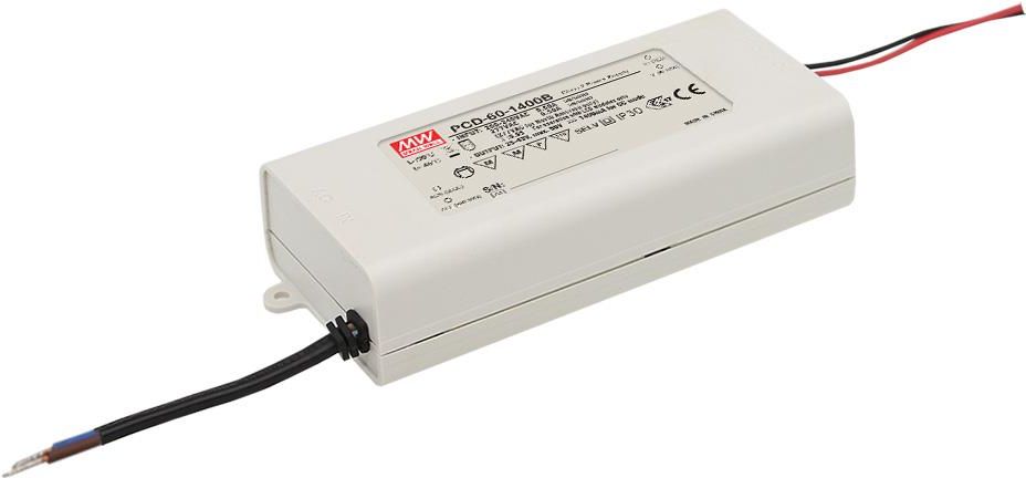 Zasilacz przełączający LED | Z opcją ściemniania Zasilacz LED w obudowie z tworzywa sztucznego o wyjście prądu stałego (C.C.). Stopień ochrony: IP30 Ściemniany z AC, 60-300/odcinanie fazy. Uwaga! Opis tego produktu został przetłumaczony automatycznie. Jeśli możemy poprawić go dzięki Tobie, prosimy o kontakt. Wyposażenie: Ściemnianie prądem przemiennym AC, odpowiednie do ściemniaczy z odcięciem fazowym i przyłączem skręcanym. · Zabezpieczenie przed przeciążeniem przez ogranicznik prądu, auto recovery · Zabezpieczenie przed zwarciem, przeciążeniem, przepięciem · Wewnętrzny układ PFC · Do zastosowań wewnętrznych · Do zastosowań oświetlenia LED i podświetlenia · Prąd stały · EN61000-3-2, Class C, EN55015, EN61347-1, EN61347-2-13. Dane techniczne: Długość produktu: 128 mm · Ilość wejść: 1 x · Ilość wyjść: 1 x · Klasa ochrony: II · Maksymalne napięcie wyjściowe: 86 V/DC · Maksymalny prąd wyjściowy: 0.7 A · Minimalne napięcie wyjściowe: 50 V/DC · Moc maksymalna: 60 W · Napięcie robocze: 230 V/AC · Napięcie wejściowe (maks.): 295 V/AC · Napięcie wejściowe (min.): 180 V/AC · Rodzaj zasilacza: Taktowany · Specyfikacja sterownika LED: Ściemniacz, Układ PFC, Zabezpieczenie przed przeciążeniem, Montaż w strefach zagrożonych wybuchem · Stopień ochrony IP: IP30 · Szerokość produktu: 60 mm · Waga: 350 g · Wykonanie (sterownik LED): Stałonaprądowy · Wysokość produktu: 31.5 mm · Złącze (komponenty): Przewód z wolnym końcem Wskazówki: Ważne informacje!Proszę nie zwracać uwagi na wymiary sterownika LED / transformatora LED! Wybierz sterownik LED / transformator LED, który ma około 1/3 więcej mocy (Watts) Decydująca dla obciążenia sterownika LED nie jest moc LED, ale faktyczne zużycie prądu (amper) diody LED. Należy wziąć pod uwagę, że prąd rozruchowy jest znacznie wyższy.