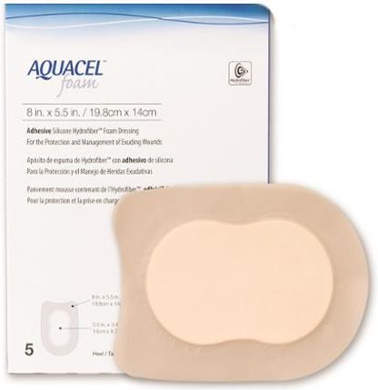 AQUACEL® Foam – opatrunek piankowy na rany z wysiękiem /PRZYLEPNY/ AQUACEL® Foam to opatrunek piankowy z warstwą kontaktową wykonaną w technologii Hydrofiber™. Chroni ranę i zapewnia jej optymalne środowisko gojenia. Dzięki właściwościom chłonnym i zastosowaniu silikonowych przylepców opatrunek świetnie się sprawdza w terapii ran o różnej etiologii. Jak działa opatrunek AQUACEL® Foam? AQUACEL® Foam to opatrunek piankowy stworzony w oparciu o technologię Hydrofiber™, która zapewnia optymalne środowisko dla gojenia rany. Dostępny jest w wersji przylepnej i nieprzylepnej. Zbudowany jest z wodoodpornej zewnętrznej błony poliuretanowej o wysokiej paroprzepuszczalności, miękkiej warstwy absorbującej pianki, warstwy kontaktowej z raną wykonanej w technologii Hydrofiber™ i delikatnego silikonowego przylepca w wersji przylepnej. Budowa zewnętrznej warstwy błony poliuretanowej sprawia, że jest to opatrunek wodoodporny (w wersji przylepnej), dzięki czemu chroni on ranę przed wirusami i bakteriami, a jednocześnie pozwala pacjentowi na mycie się bez konieczności zdejmowania opatrunku. Dzięki zewnętrznej błonie poliuretanowej w środowisku rany zachowany jest odpowiedni poziom wilgoci – odparowuje przez nią nadmiar wilgoci. Opatrunek wchłania i zatrzymuje w swojej strukturze wysięk, dzięki czemu zmniejsza ryzyko maceracji skóry. Dzięki wykorzystaniu technologii Hydrofiber™ opatrunek może być stosowany również na rany obficie sączące. W kontakcie z wysiękiem z rany warstwa kontaktowa przybiera postać spoistego żelu, dzięki czemu usuwanie opatrunku jest bezbolesne, delikatna ziarnina nie ulega uszkodzeniu, a adhezja komórek pozostaje niska zarówno w środowisku suchym, jak i wilgotnym. Właściwości technologii Hydrofiber™ zapewniają ponadto zmniejszenie poziomu aktywnych metaloproteinaz w ranach przewlekłych i stymulowanie angiogenezy. Wpływa to bardzo korzystnie na proces gojenia się ran. Opatrunek AQUACEL® Foam wspomaga również usuwanie tkanki martwiczej z rany (oczyszczenie autolityczne), nie uszkadzając przy tym zdrowych tkanek. Zmniejsza również ryzyko zakażenia krzyżowego podczas zmiany opatrunku. Dzięki zastosowaniu delikatnego przylepca na bazie silikonu opatrunek nie sprawia bólu przy zdejmowaniu, jest łatwy do usunięcia, w większości przypadków nie powoduje podrażnień ani reakcji alergicznych. Na jakie rany można stosować opatrunek AQUACEL® Foam? Opatrunek AQUACEL® Foam może być stosowany jako opatrunek pierwotny w ranach płytkich, bez cech infekcji. Stanowi także idealne przykrycie jako wtórny z opatrunkami AQUACEL® Ag+ Extra w ranach zakażonych oraz z opatrunkami AQUACEL® Extra w ranach głębokich czystych. Opatrunek AQUACEL® Foam znajduje zastosowanie w leczeniu żylnych owrzodzeń podudzi. Doskonale sprawdza się pod uciskiem potrzebnym w terapii kompresyjnej – zatrzymuje bowiem wysięk w swojej strukturze, chroniąc otaczającą skórę. Może także stanowić element profilaktyki powikłań takich jak odleżyny czy uszkodzenia skóry spowodowane tarciem lub długotrwałym kontaktem z wilgocią. Przeciwwskazania w stosowaniu Opatrunki piankowe AQUACEL™Foam nie powinny być używane przez osoby ze stwierdzoną nadwrażliwością lub, u których wystąpiły reakcje alergiczne na opatrunek czy którykolwiek z jego składników. Czy opatrunek AQUACEL® Foam można przycinać? Opatrunki AQUACEL® Foam w zależności od rozmiaru i kształtu rany mogą być dowolnie docinane. Jak założyć opatrunek AQUACEL® Foam? Przed założeniem opatrunku AQUACEL® Foam ranę należy oczyścić i zdezynfekować, a zdrową skórę wokół rany osuszyć. Należy wybrać taki rozmiar opatrunku, by zasłaniał on 1-2 cm zdrowej skóry otaczającej ranę. Podczas zakładania opatrunku nie należy dotykać jego części chłonnej i lepnej. Opatrunek należy skierować białą stroną do rany. Strona cielista to zawsze strona zewnętrzna. Stosując opatrunki przylepne takie jak AQUACEL® Foam, należy pamiętać o tym, by opatrunek delikatnie wygładzać od wewnątrz w stronę krawędzi. Natomiast w przypadku zastosowania opatrunków bez części lepnej lub jeśli opatrunek przylepny zostanie rozcięty, niezbędne będzie zastosowanie dodatkowego mocowania przy użyciu plastra lub bandaża. Do zaopatrywania obszarów problematycznych, takich jak okolice kości krzyżowej lub pięta, dostępne są specjalnie wyprofilowane opatrunki przylepne. Jak często należy zmieniać opatrunek? Opatrunek AQUACEL® Foam może pozostać na ranie do 7 dni. Jednak należy go zmieniać zawsze kiedy wysięk będzie dochodził do brzegów opatrunku. Jest to widoczne w postaci przebarwienia na powierzchni opatrunku.