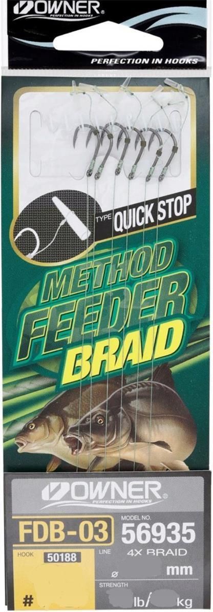 Przypon Owner Method Feeder FDB nr 12 Przedmiotem sprzedaży jest zestaw 6 gotowych PROFESJONALNYCH przyponów NA PLECIONCE zakończonych PUSH STOP QUICKSTOP do mocowania kulek pelletów dumbellsów itp Haczyki METHOD FEEDER firmy OWNER posiadają przypon z włosem zakończony PUSH STOP QUICKSTOP …