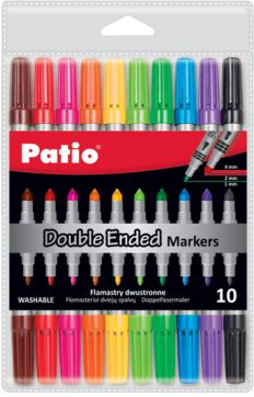 Szczegóły produktu: flamastry dwustronne z serii Double Ended, 10 kolorów w opakowaniu, grubość linii pisania: 4 mm i 1 mm.