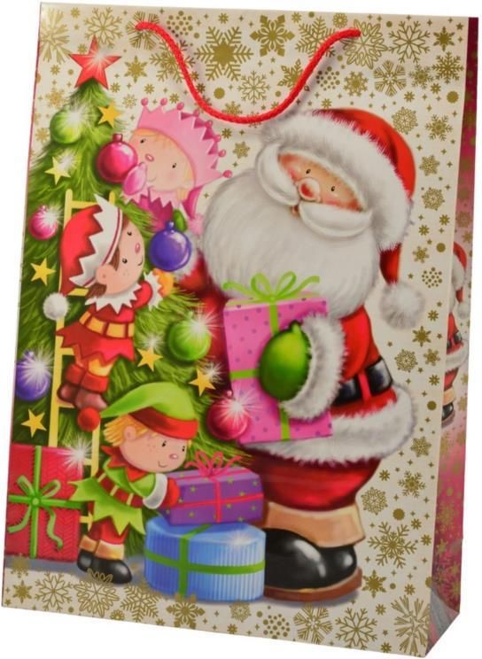 Torebki ozdobne T-10L. Klasyczne laminowane torebki na duże prezenty. Wymiary: 34,5 x 48 x 13 cm ( szer. x wys. x dno). Jednostka sprzedaży opakowanie Idealne na: duże przedmioty, zabawki.