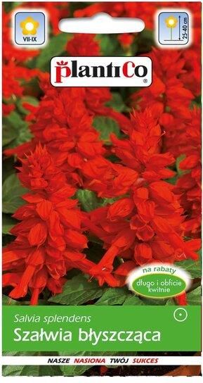 Nasiona kwiatów PlantiCo. Szałwia błyszcząca, czerwona - roślina jednoroczna, której cechą wyróżniającą jest długie i obfite kwitnienie. Kwiaty zebrane są w gęste kłosy długości 15-20 cm. Wysokość roślin wynosi 25-40 cm. Kwitnie od lipca do września.