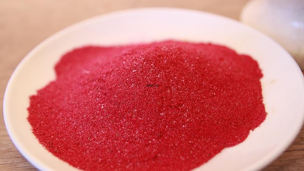 Skład Koncentrat z soku z buraków, mąka pszenna, sól, olej roślinny palmowy, substancja przeciwzbrylająca dwutlenek krzemu, hydrolizat białka roślinnego, regulator kwasowości kwasek cytrynowy, glutaminian sodu, inozynian disodowy, guanylon disodowy, czosnek, liście palmowe, majeranek, pieprz …