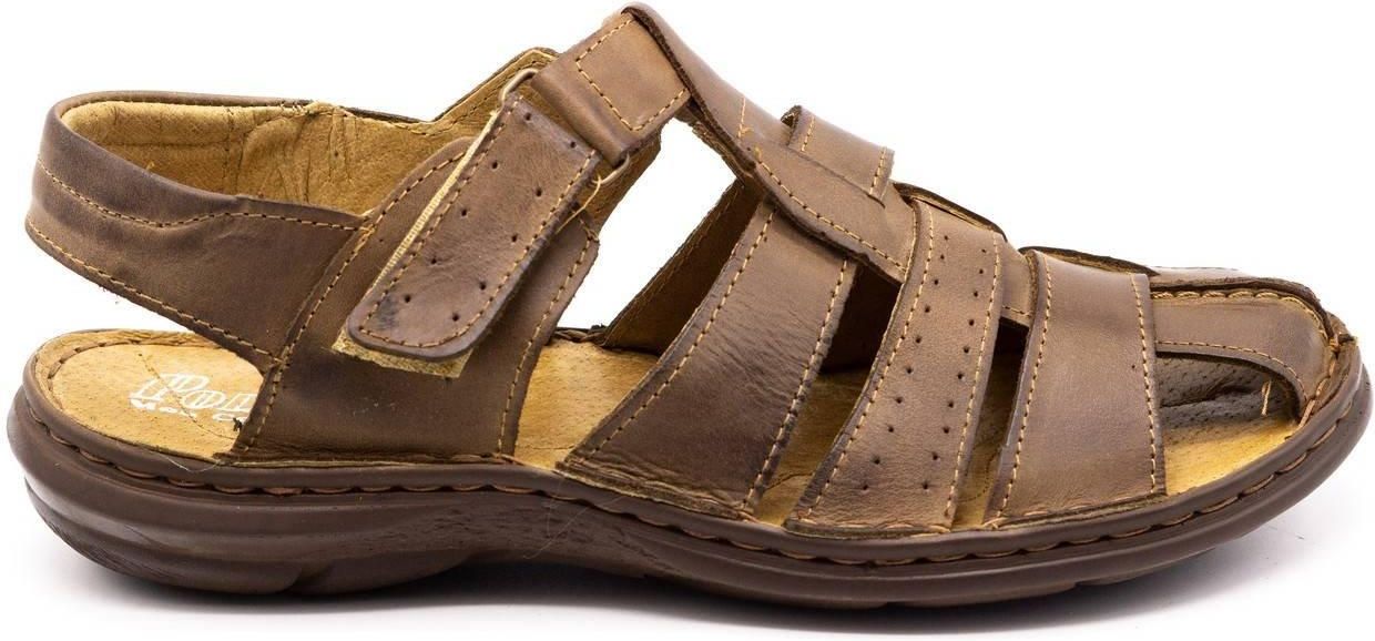 Sandały męskie skórzane na rzep 211 brązowe Sandały męskie skórzane 211 spodobają się panom bez względu na wiek. To ten rodzaj obuwia, który po prostu powinien mieć każdy, ponieważ sprawdzą się zarówno podczas wakacyjnego wyjazdu, jak i jako letnie obuwie domowe i weekendowe. Atutem tego wyboru …