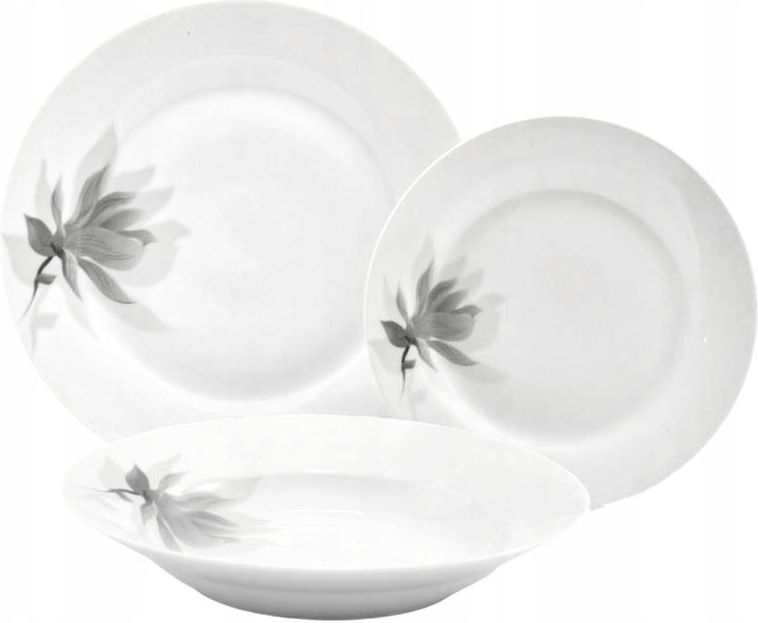 Komplet obiadowy z porcelany dla 6 osób Koko Magnolia 18el Zalety Wykonane z wysokiej jakości porcelany szkliwionej Bezpieczny, dopuszczony do kontaktu z żywnością Oryginalny i ciekawy wzór będzie ozdobą każdej kuchni i jadalni Zdobienia naniesione w najnowszej technologii zapewniającej wysoką trwałość Elegancka i ponadczasowa forma sprawia, że doskonale wpasuje się w większość wnętrz Doskonały stosunek ceny do jakości Zestaw znajdzie zastosowanie w każdym domu lub lokalu gastronomicznym. Dane techniczne Kolor: Biały Zdobienia: Magnolia Pakowane po: 18 sztuk Waga (z opakowaniem): 5 kg Można myć w zmywarce: Tak Do mikrofalówki: Tak