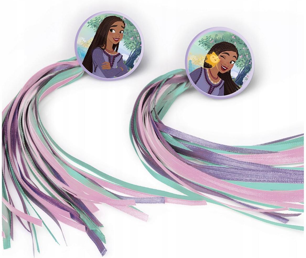 WSTĄŻKI NA KIEROWNICĘ WILD WSTĄŻKI NA KIEROWNICĘ Te kolorowe i lśniące wstążki to nie tylko stylowy dodatek, ale również wyraz fascynacji postaciami z Disneya. Wstążki z księżniczkami doskonale migoczą w świetle, nadając rowerowi niepowtarzalny urok. Z łatwością mocuje się je na kierownicy, tworząc efektowny efekt w czasie jazdy. Wykonane z wytrzymałego materiału, te wstążki są odporne na warunki atmosferyczne, co sprawia, że mogą towarzyszyć w wielu rowerowych wyprawach. Dodatkowo, ich delikatne lśnienie sprawia, że są doskonałym dodatkiem do rowerka każdej małej miłośniczki księżniczek. Wstążki z to nie tylko ozdoba, ale także sposób na wzbudzenie uśmiechu podczas codziennych przejażdżek. Niech Twoje dziecko cieszy się magiczną atmosferą Disneya, a rower stanie się nie tylko środkiem transportu, ale także źródłem radości i zabawy! Dekoracyjne wstążki do rowerka i hulajnogi. Kolorowe wstążki mocowane do uchwytów rowerka bądź hulajnogi uatrakcyjniają dziecku jazdę i stanowią piękną ozdobę. Wykonany z wysokiej jakości tworzyw. Wodoodporne. Mocowanie do otworów w gumowych nakładkach kierownicy (rączkach). Ozdobiony naklejką z bohaterami z bajek Disneya. Naklejka zabezpieczona warstwą gumy. Średnica nasadki: 4,2 cm. Długość wstążek: ok. 21 cm. Materiał nasadki: plastik. Materiał wstążek: poliester. ✅ INNE Z TEJ SERII wiatraczek kask koszyk ochraniacze rękawiczki Zapraszamy na pozostałe oferty, znajdziesz tam kaski, hulajnogi, deskorolki, ochraniacze, rękawiczki, koszyki, wiatraczki, dzwonki i inne akcesoria z różnych bajek