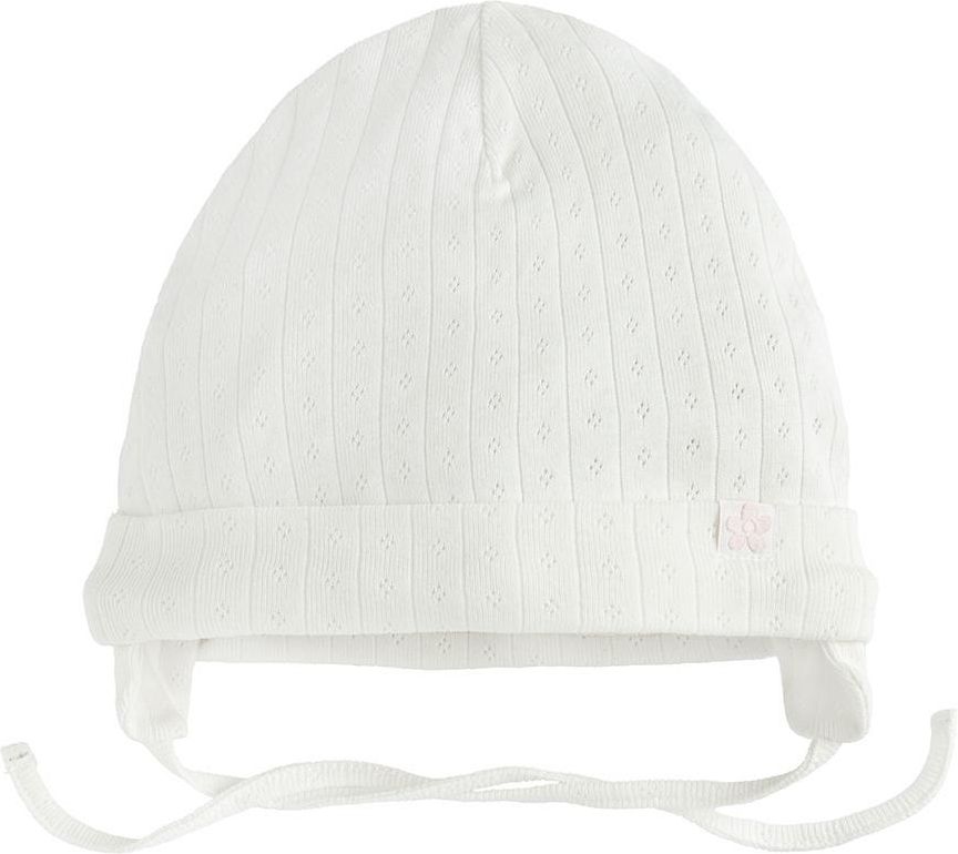 Czapka dla dziewczynki Materiał i technologie: 100% bawełna ażurowa certyfikat Oeko-Tex Standard 100 Pranie i pielęgnacja: Prać w temperaturze do 40 °C, proces łagodny. Nie bielić. Nie suszyć w suszarce bębnowej. Prasować w temperaturze do 150 °C. Nie czyścić chemicznie. Prać i prasować po lewej stronie. Prać z podobnymi kolorami. Trzymać z dala od ognia.