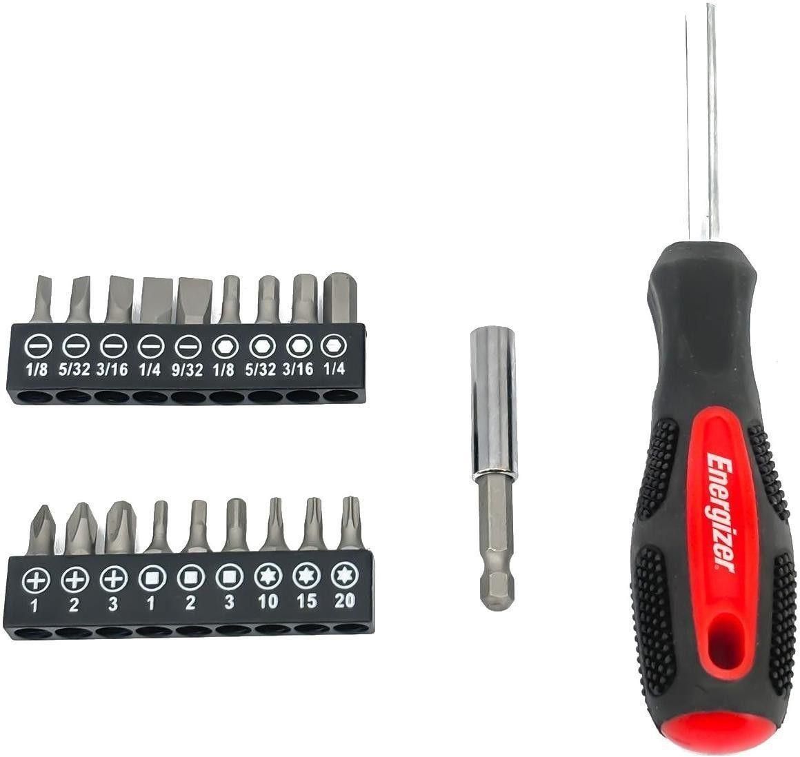 Wkrętak 3SK02 marki Energizer zawiera 18 wymiennych końcówek, odpowiednich do różnych zadań i napraw. Bity obejmują końcówki płaskie, krzyżakowe, Torx i sześciokątne, zapewniając elastyczność i komfort użytkowania. Idealny do majsterkowania, prac konserwacyjnych w domu i projektów precyzyjnych. Wygodny uchwyt i magnetyczna końcówka zapewniający bezwysiłkową pracę.