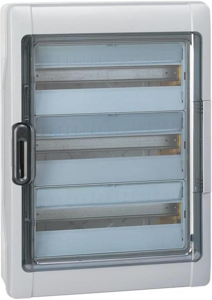 LEGRAND APV 3 rzędy IP65 54M 601987 Dystrybutor wilgocioodporny Legrand Plexo³, klasa ochrony IP65 - IK09, 3 rzędy, 54 moduły (18 modułów/rząd), wymiary 622 x 448 x 161 (wys x szer x gł w mm), samogasnący 650°C, w tym N i zaciski PE , Rozdzielacz natynkowy klasa ochrony II. Drzwi przeźroczyste, dwustronnie zawiasowe. Zgodnie z EN 62208, do budowy rozdzielaczy instalacyjnych zgodnie z EN 61439-3. Uwaga! Opis tego produktu został przetłumaczony automatycznie. Jeśli możemy poprawić go dzięki Tobie, prosimy o kontakt. Dane techniczne: Dalsze dane techniczne: Stopień ochrony: IP65 Materiał obudowy: tworzywo sztuczne Szerokość w modułach: 18 Projekt okładki: zamknięty · Głębokość produktu: 161 mm · Ilość rzędów: 3 · Kolor: szary · Kolor producenta: szary · Rodzaj montażu: nadbudowa · Szerokość produktu: 448 mm · Wysokość produktu: 622 mm