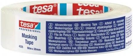 Taśma malarska TESA 50m x 30mm BIAŁA 04325-00002-02 Taśma malarska Tesa 04325-00002-02 to wysokiej jakości taśma maskująca o uniwersalnym zastosowaniu, idealna do precyzyjnych prac malarskich i dekoracyjnych. Dzięki swojej trwałości i niezawodności pozwala na osiągnięcie profesjonalnych rezultatów w projektach wykończeniowych. Cechy produktu: Wymiary: Długość: 50 metrów. Szerokość: 30 mm – odpowiednia do maskowania węższych powierzchni oraz tworzenia bardziej szczegółowych wzorów. Kolor: Biała, co ułatwia jej zauważenie i usunięcie po zakończeniu pracy. Materiał: Papier wysokiej jakości, który jest elastyczny i odporny na podciekanie farby. Klej: Delikatny klej, który zapewnia dobrą przyczepność do różnych powierzchni i łatwe usunięcie bez pozostawiania śladów. Zalety: Precyzyjne krawędzie: Umożliwia uzyskanie ostrych linii podczas malowania, idealnych dla projektów dekoracyjnych. Łatwość usuwania: Nie pozostawia resztek kleju ani nie niszczy powierzchni po zakończeniu pracy. Wszechstronność: Nadaje się do stosowania na różnorodnych podłożach, takich jak ściany, drewno, szkło czy metal. Optymalna szerokość: Idealna do bardziej szczegółowych prac, gdzie wymagane jest dokładne maskowanie. Zastosowanie: Maskowanie: Zabezpieczanie wąskich listew, krawędzi mebli, ram okiennych oraz innych elementów przed zabrudzeniem farbą. Dekoracje: Tworzenie precyzyjnych wzorów na ścianach i elementach wyposażenia. Projekty wykończeniowe: Pomoc w precyzyjnym malowaniu narożników i detali. Taśma malarska Tesa 04325-00002-02 to praktyczne i niezawodne narzędzie dla każdego, kto chce osiągnąć estetyczny i profesjonalny efekt w swoich pracach malarskich. Jej optymalna szerokość oraz łatwość użycia sprawiają, że doskonale sprawdzi się zarówno w domu, jak i w profesjonalnych projektach.