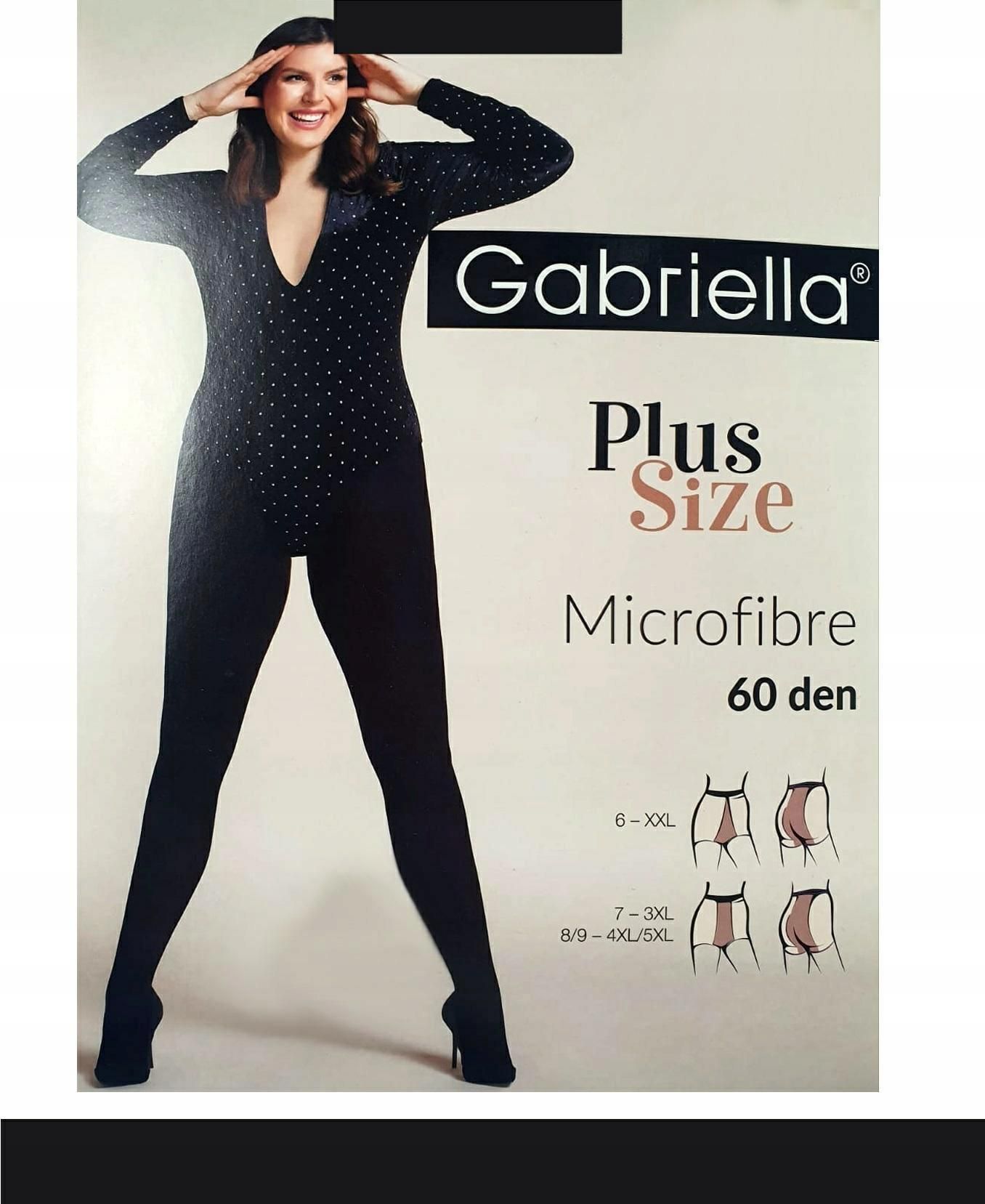 GABRIELLA MICRO 60 DEN PLUS Size Rajstopy Microfibra 7-XXXL / Nero Kryjące, gładkie rajstopy damskie wykonane z miękkiej i przyjemnej w dotyku mikrofibry z dodatkiem włókien elastycznych typu Lycra. Rajstopy z niewidocznie wzmocnioną częścią majteczkową. Dzięki wszyciu klinów o specjalnej konstrukcji rajstopy plus size są wyjątkowo wygodne i komfortowe, nie zsuwają się i nie uciskają. Dostępne w kilku klasycznych kolorach. Grubość: 60 DEN. Skład: 84% poliamid, 15% elastan, 1% bawełna. Rozmiar/size Wzrost/Height Obwód bioder/Hip size XXL - 6 165-175 128-144 3XL - 7 165-180 144-164 4XL/5XL - 8/9 165-180 164-204 Polecamy nasze pozostałe ogłoszenia!! Wszystkie nasze produkty są nowe z oficjalnego kanału dystrybucji producenta. Oryginalnie zapakowanych produktów nie otwieramy, nie weryfikujemy poprawności kompletacji towaru przez producenta. Staramy się, aby byli Państwo maksymalnie zadowoleni zarówno z produktów jak i z poziomu obsługi. Nasze przesyłki pakowane są w foliopaki - jeśli chcesz otrzymać idealne, nienaruszone podczas transportu opakowanie wybierz opcje dodatkową - "Pakowanie na prezent". Zapewni to radość z opakowania nieuszkodzonego przez kuriera.