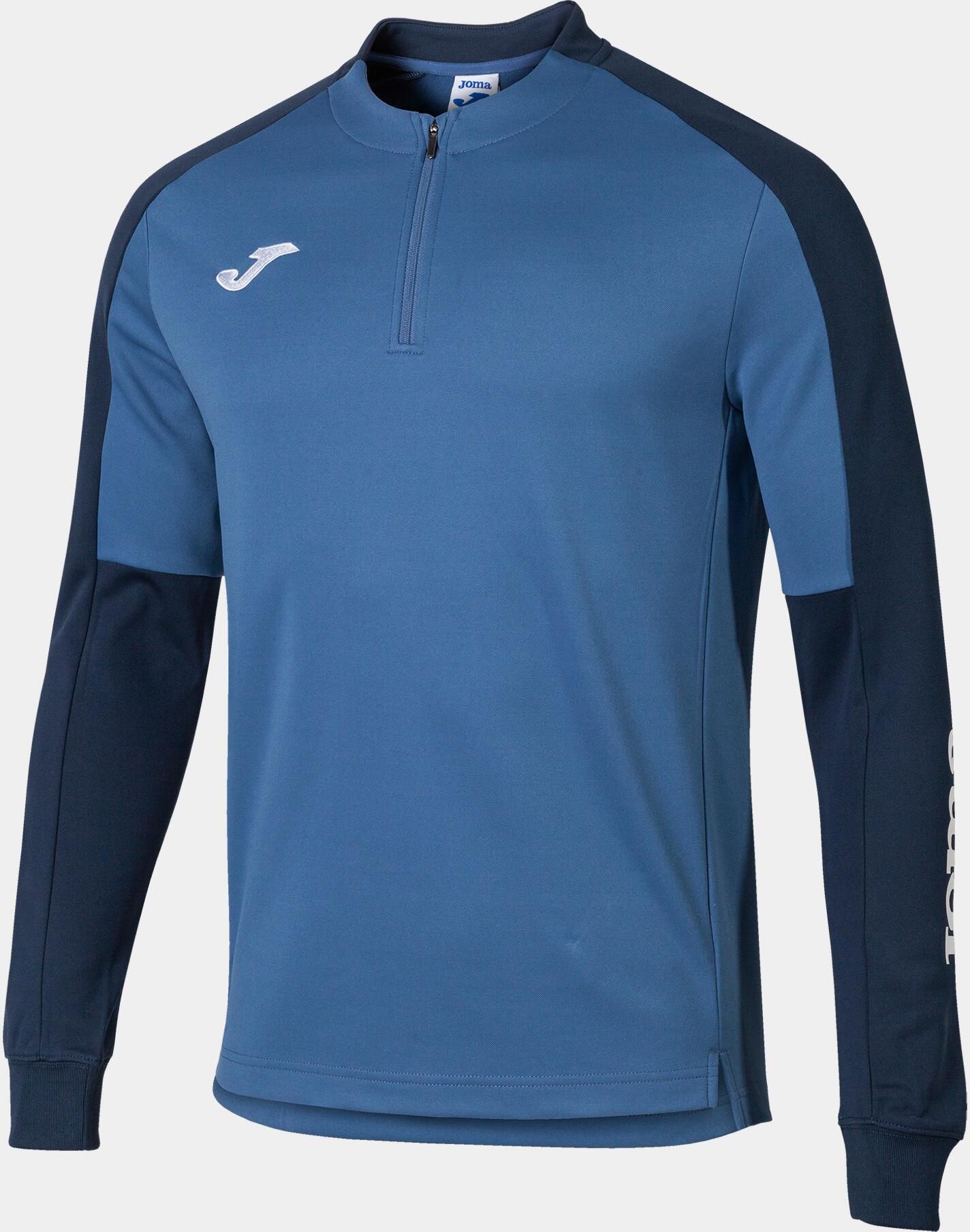 ECO CHAMPIONSHIP SWEATSHIRT BLUE NAVY Właściwości Bluza dla mężczyzn i chłopców Joma. Wkładana przez głowę z krótkim zamkiem. Ściągacze przy rękawach. Materiał 100% z poliester fleece pochodzący z recyklingu Kolor niebiesko-granatowy