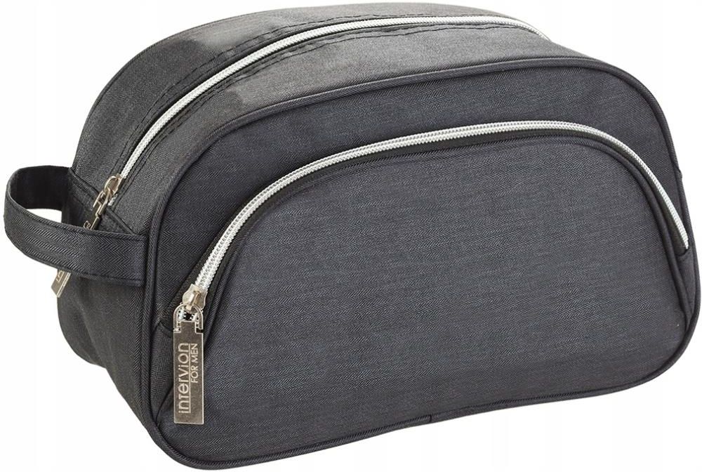 Inter-Vion - FOR MEN - Kosmetyczka męska - 498767 Męska kosmetyczka marki Inter-Vion. Posiada klasyczny kształt kuferka z poręcznym materiałowym uchwytem, umożliwiającym sprawny i bezproblemowy transport. Wykonana została z dobrej jakości, wysokogatunkowego materiału w czarnym odcieniu z delikatną …