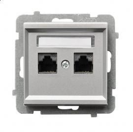 Gniazdo komputerowe podwójne 5e kategoria ekranowane p/t (Krone), srebrny mat SONATA OSPELSeria podtynkowa Sonata należy do osprzętu modułowego co oznacza że do każdego osprzętu należy dokupić osobno ramkę, według upodobania osprzęt można łączyć z ramkami jedno lub wielokrotnymi, pionowymi lub poziomymi.Seria Sonata bez wątpieńa przeznaczona jest dla najbardziej wymagających klientów, dla których najważniejsza jest jakość wykonania oraz styl. Seria posiada bogatą paletę kolorów łączników i gniazd, oraz ramek wielokolorowych wykonanych z tworzywa sztucznego a ponad to w serii dostępny jest także osprzęt wykonany z metalu. Wyroby serii Sonata przeznaczone są do montażu podtynkowego w puszkach o60 mm. W skład serii wchodzi taki osprzęt jak łączniki, gniazda wtyczkowe, gniazda teleinformatyczne, gniazda abonenckie, gniazda głośnikowe, ściemniacze, łączniki hotelowe, regulatory temperatury, czujniki ruchu oraz łączniki i gniazda posiadające stopień szczelności IP-44.UWAGA: Elementy z serii Sonata nie przylegają idealnie do ściany. Pomiędzy ścianą a ramką znajduje się ok. 2mm przerwy.Producent w Serii Sonata udostępnia kupującemu takie kolory jak:biały ecruczarny metaliksrebrny matszampański złotyczekoladowy metalikstal inoxsrebrny