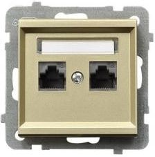 Gniazdo komputerowe podwójne 5e kategoria ekranowane p/t (Krone), szampański złoty SONATA OSPELSeria podtynkowa Sonata należy do osprzętu modułowego co oznacza że do każdego osprzętu należy dokupić osobno ramkę, według upodobania osprzęt można łączyć z ramkami jedno lub wielokrotnymi, pionowymi lub poziomymi.Seria Sonata bez wątpieńa przeznaczona jest dla najbardziej wymagających klientów, dla których najważniejsza jest jakość wykonania oraz styl. Seria posiada bogatą paletę kolorów łączników i gniazd, oraz ramek wielokolorowych wykonanych z tworzywa sztucznego a ponad to w serii dostępny jest także osprzęt wykonany z metalu. Wyroby serii Sonata przeznaczone są do montażu podtynkowego w puszkach o60 mm. W skład serii wchodzi taki osprzęt jak łączniki, gniazda wtyczkowe, gniazda teleinformatyczne, gniazda abonenckie, gniazda głośnikowe, ściemniacze, łączniki hotelowe, regulatory temperatury, czujniki ruchu oraz łączniki i gniazda posiadające stopień szczelności IP-44.UWAGA: Elementy z serii Sonata nie przylegają idealnie do ściany. Pomiędzy ścianą a ramką znajduje się ok. 2mm przerwy.Producent w Serii Sonata udostępnia kupującemu takie kolory jak:biały ecruczarny metaliksrebrny matszampański złotyczekoladowy metalikstal inoxsrebrny