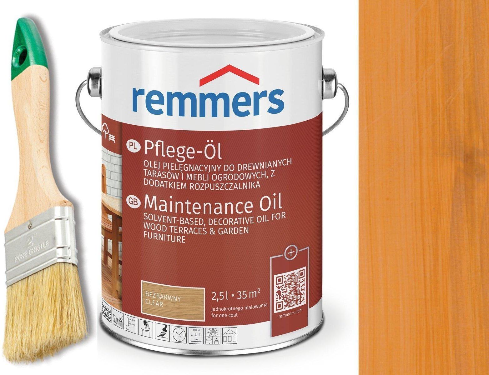 Remmers Pflege-Öl 0,75 litra Orzech Olej pielęgnacyjny do drewnianych tarasów i mebli ogrodowych, z dodatkiem rozpuszczalnika Zakres zastosowania Do drewna stosowanego w pomieszczeniach i na otwartej przestrzeni. Do elementów budowlanych nie zachowujących wymiaru i zachowujących wymiar w ograniczonym zakresie Do drewnianych mebli ogrodowych i tarasów Do drewna tekowego, bangkirai, massaranduby, iroko, dębu, modrzewia i daglezji Do drewna termizowanego Do konglomeratów drewniano-polimerowych, bambusa, resysty polecamy nasz WPC-Imprägnier-Öl Właściwości Działa hydrofobizująco Powłoka odporna na wpływ czynników atmosferycznych, reguluje wilgotność drewna Chroni drewno przed wyschnięciem Warianty pigmentowane chronią drewno przed szarzeniem Intensywne kolory Łatwa obróbka Ewentualne poprawki nie wymagają uprzedniego szlifowania powłoki Zużycie Zależnie od nasiąkliwości drewna 60 - 80 ml/m² na jedną warstwę Przygotowania Aby uniknąć wydłużenia się procesu schnięcia w przypadku drewna bogatego w garbniki, przed pierwszą aplikacją drewno powinno być przez kilka tygodni poddane wietrzeniu lub zostać umyte środkiem Holz-Tiefenreiniger. Brud, tłuszcz oraz stare powłoki należy całkowicie usunąć za pomocą środka Holz-Tiefenreiniger. Zszarzałe powierzchnie drewna należy oczyścić za pomocą środka Holz-Entgrauer. Glony należy usunąć środkiem Grünbelag-Entferner*. Drewno stosowane na otwartej przestrzeni, wymagające ochrony przed sinizną i zgnilizną, należy uprzednio zaimpregnować produktem Remmers Holzschutz-Grund* Warunki stosowania Temperatury materiału, otoczenia i podłoża powinny się mieścić w przedziale od min. +5 °C do maks. +30 °C. Materiał starannie rozmieszać. Malować pędzlem. W miarę możliwości podczas pierwszej aplikacji deski tarasowe należy pomalować ze wszystkich stron. Materiał nakładać za pomocą pędzla do lazur, ławkowca lub ścierek bawełnianych, zgodnie z układem włókien drewna. Po upływie 30 minut niewchłonięty materiał zdjąć za pomocą suchego pędzla lub ścierki. Po wyschnięciu (około 12 godzin) nanieść drugą warstwę. Naruszone opakowanie należy starannie zamykać, a zawartość zużyć w możliwie krótkim czasie. Wskazówki wykonawcze Poprzez wykonanie powierzchni próbnych należy sprawdzić tolerancję materiału z podłożem oraz przyczepność. W przypadku gatunków drewna o dużej zawartości rozpuszczalnych w wodzie garbników, jak np. dąb, czerwony cedr, afcelia, redwood itp. opady mogą spowodować ich wymywanie. Może to skutkować powstaniem przebarwień na jasnym murze lub tynku. Wersja bezbarwna nie chroni przed promieniowaniem UV (a więc przed szarzeniem drewna), dlatego nie nadaje się do stosowania na powierzchniach narażonych na bezpośrednie zwietrzanie. Jeśli bezbarwna powłoka pożądana jest na elementach stosowanych na otwartej przestrzeni, to należy ją wielokrotnie nakładać i regularnie pielęgnować. W strefie bezpośredniego zwietrzania niezbędne jest odświeżanie powłoki co najmniej raz w roku. Kolory są dopasowane do danego gatunku drewna, można je jednak bez problemu zastępować na innych gatunkach. Kolor będzie się wówczas oczywiście różnił od zawartego we wzornikach. Niebezpieczeństwo samozapłonu Nie należy stosować na stanowiskach, na których aplikuje się lakiery lub bejce zawierające nitrocelulozę, zanieczyszczone tekstylia (np. ścierki do czyszczenia, odzież roboczą) zbierać do ognioodpornych pojemników i w nich usuwać. Suszenie Pyłosuchość powłoka osiąga po upływie ok. 4 godz. Do nakładania następnych powłok nadaje się po ok. 12 godz. Wartości sprawdzone w praktyce w temp.20 °C i przy wilgotności względnej powietrza (wwp) = 65 %. Niskie temperatury, słaba wentylacja i wysoka wilgotność powietrza powodują wydłużenie procesu schnięcia. Rozcieńczanie Materiał gotowy do stosowania Narzędzia/czyszczenie Pędzle do lazur, ławkowce, ścierki bawełniane Narzędzia natychmiast po użyciu należy umyć środkiem Verdünnung & Pinselreiniger. Brudną ciecz usunąć zgodnie z przepisami. Przechowywanie/trwałość W oryginalnym opakowaniu, w chłodnym i suchym miejscu zabezpieczonym przed mrozem produkt można przechowywać przez co najmniej 5 lat. Możliwe produkty systemowe Holzschutz-Grund Holz-Tiefenreiniger Holz-Entgrauer