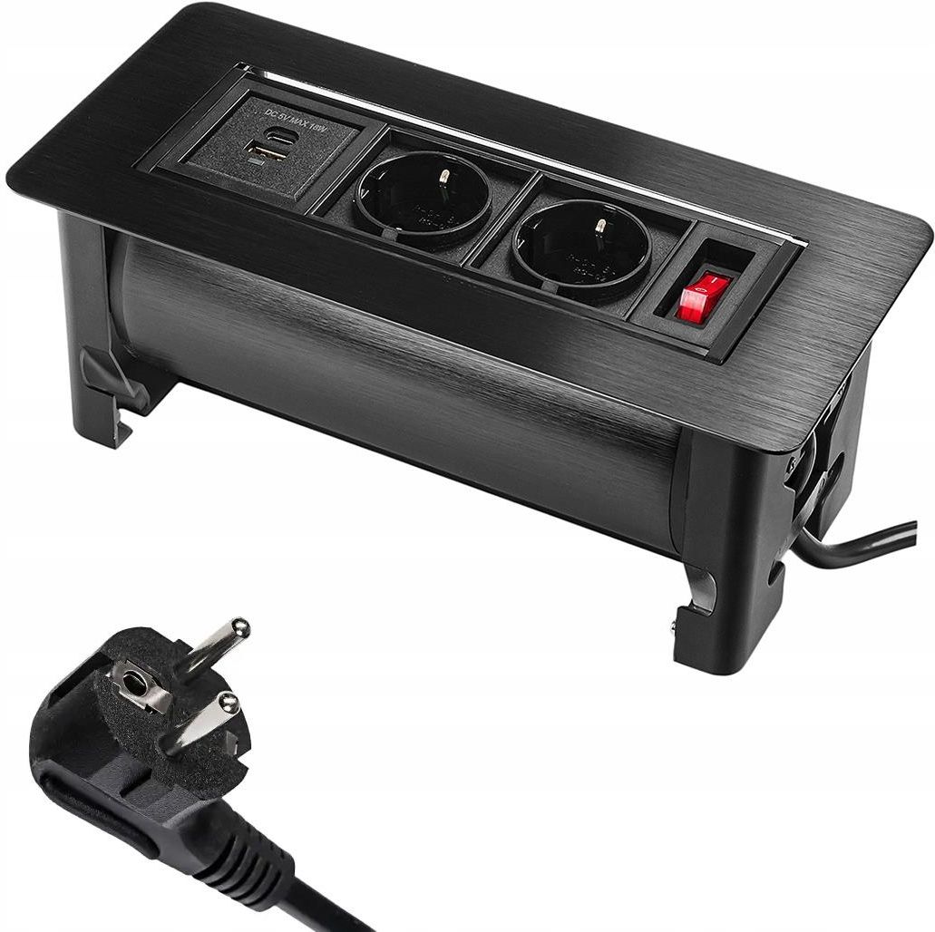 Mediaport meblowy USB-C USB-A 2x 230V OBRACANY Gniazdo blatowe wpuszczane SKU: SPSO24CB_V2 Najważniejsze Cechy -Kompatybilność: Idealny do użytku w biurach, domach, salach konferencyjnych i salonach sprzedaży. -Uniwersalne 2x gniazda Schuko: Gniazda typu F pozwalają na podłączenie urządzeń elektrycznych o różnych napięciach. -Elegancki design: Wykonany z wysokiej jakości aluminium w kolorze czarnym. -Łatwa instalacja: Prosty montaż poprzez wycięcie otworu w blacie i umieszczenie gniazda w odpowiednim miejscu. -Praktyczna obrotowa instalacja: Praktyczne ukrycie poprzez obrót chroni porty, gdy nie są używane, zapewniając estetyczny wygląd. -Długość kabla: Kabel zasilający z wtyczką typu E o długości 1,5m zapewnia wygodne podłączenie do zasilania. -Ładowarka USB: Wyposażony w dwa porty ładowarki USB (USB-A i USB-C) umożliwia ładowanie wielu urządzeń jednocześnie. Gniazdo Schuko Bezpieczne Dzięki odpowiedniemu uziemieniu, gniazdo Schuko zwiększa bezpieczeństwo korzystania z urządzeń elektrycznych. Brak bolca umożliwia obrócenie wtyczki o 180 stopni. Funkcjonalne Zaprojektowane z myślą o europejskich standardach, dzięki czemu pasuje do wielu urządzeń elektrycznych. Podwójna Ładowarka USB Dzięki wbudowanym dwóm portom USB, możesz jednocześnie ładować dwa urządzenia, takie jak smartfony tablety inne gadżety elektroniczne Gniazdo jest łatwe w montażu i idealnie wpasowuje się w każdy blat, zachowując estetykę i porządek w przestrzeni roboczej. Obrotowe gniazdo meblowe Obrotowa konstrukcja umożliwia łatwy dostęp zasilania wtedy, gdy jest to potrzebne. Po zakończonej pracy można łatwo obrócić, co pozwala na utrzymanie porządku i chroni je przed kurzem oraz uszkodzeniami. dyskretnie ukryj w blacie zachowaj estetykę i porządek Elegancja i Trwałość Gniazdo meblowe z wykończeniem w stylu szczotkowanego metalu to połączenie elegancji i wytrzymałości, które doskonale uzupełni nowoczesne wnętrza. Taki wzór nadaje gniazdu luksusowy wygląd, a jednocześnie zapewnia odporność na zarysowania i inne uszkodzenia mechaniczne. Specyfikacja Kabel zasilający: 1,5m z wtyczką typu E Zasilanie sieciowe: 230 V 50 Hz Wymiary zewnętrzne: 26,3 x 12 cm Sugerowane wymiary otworu: 110 x 253 mm Grubość blatu: 0,5 do 3,2 cm Porty: 1x podwójna ładowarka USB (1x USB-A, 1x USB-C) Rodzaj gniazd: 2x typu niemieckiego (Schuko) 110-250 V (16 A) Kolor: Czarny