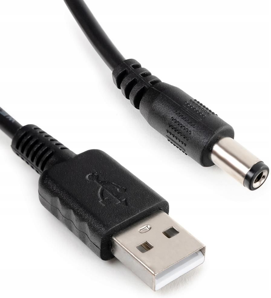 Kabel adaper zasilania z USB na DC 2.5/5.5 100cm Spacetronik Kabel USB - wtyk DC 2.5/5.5mm. Do zasilania urządzeń z gniazdem DC. Prąd 5V, maksymalnie 1A. Długość kabla 100cm Masa: 0,30 Kabel adaper zasilania z USB na DC 2.5/5.5 1 metr