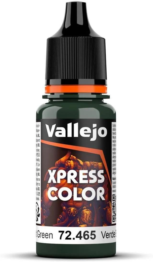 Za 3 dni czeka Cię turniej, a Twoja armia figurek jeszcze nie jest pomalowana? Żaden problem! Seria farb Xpress Color została stworzona właśnie na takie sytuacje - do szybkiego i łatwego pomalowania wielu modeli. Dzięki doskonałej kapilarności farba łatwo spływa po powierzchni, osadzając się na reliefach, szczelinach i zagłębieniach tworząc wielowymiarowy efekt kontrastu przy pomocy tylko jednej warstwy! Farby z serii Xpress Color najlepiej nakładać na spodkładowaną na biało lub szaro powierzchnię. Wyjątkowa formuła sprawi, że kolor rozłoży się w charakterystyczny sposób - na wystających krawędziach utworzy jaśniejsze odcienie rozjaśnień, na gładkiej powierzchni przyjmie średnie tony, natomiast w zagłębieniach uformuje cienie. Produkty Xpress Color można mieszać ze sobą lub rozcieńczać za pomocą Xpress Medium w celu tworzenia zupełnie nowych odcieni. Można je nakładać przy pomocy pędzla i aerografu. Farby Xpress Color zamknięte są w wygodnych butelkach o pojemności 18 ml, wyposażonych w wygodny zakraplacz zapobiegający parowaniu i wysychaniu preparatu, dzięki czemu zachowa on swoje właściwości na długi czas! Producent/osoba odpowiedzialna za bezpieczeństwo produktuACRYLICOS VALLEJO, S.L.U.Eusebio Millan, 1408800 Vilanova i la Geltrúquimico@acrylicosvallejo.com