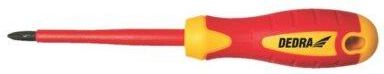 Wkrętak izolowany PH1 to narzędzie które znajdzie zastosowanie przy pracach związanych z instalacjami elektrycznymi. Wkrętak chroni użytkownika przed porażeniem prądem do 1000V. Izolowany grot z magnetyczną końcówką poprawiającą precyzję pracy wykonany został ze stali S2. Ergonomiczna rękojeść z powierzchnią antypoślizgową zapewnia pewny chwyt i precyzje podczas wykonywania prac. Wkrętak wyprodukowany zgodnie z normą EN 60900 oraz posiadający certyfikat VDE 1000V. Cechy: Rozmiar wkrętaka PH1 Długość wkrętaka 80mm Wykonany ze stali S2 Ochrona przed napięciem 1000V certyfikat VDE 1000V Wkrętak zgodny z normą EN 60900 Ergonomiczna antypoślizgowa rękojeść Specyfikcja techniczna: EAN: 5902628007339 Marka: DEDRA Symbol: 06B011 Kod producenta: 5902628007339 Długość [mm]: 80 Informacje dodatkowe: Certyfikat VDE Izolacja: TAK Liczba w komplecie: 1 Magnetyczna końcówka: TAK Materiał: S2, TPR Rodzaj: Wkrętak izolowany Rozmiar koncówki: PH1 Seria: DEDRA Typ końcówki: PH1