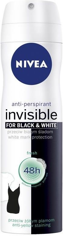 Black&White Invisible Fresh Antyperspirant Spray 150 Ml ❤️ NIVEA ❤️ ✔️ NIVEA Black&White Invisible Fresh Antyperspirant to produkt, który zapewni Ci skuteczną i niezawodną ochronę przed poceniem się, bez ryzyka pobrudzenia Twoich -ubionych ubrań. Zapewnia ochronę 5w1 i chroni przed …