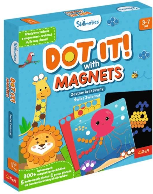 Trefl Skillmatics Dot It! With Magnets: Świat Zwierząt 62601 Kreatywny zestaw Skillmatics – Świat Zwierząt  Kolorowa zabawa, kreatywna nauka!  Zestaw Skillmatics Dot It! With Magnets – Świat Zwierząt to doskonała propozycja dla małych artystów. Dzięki ponad 300 magnetycznym kółkom dziecko …