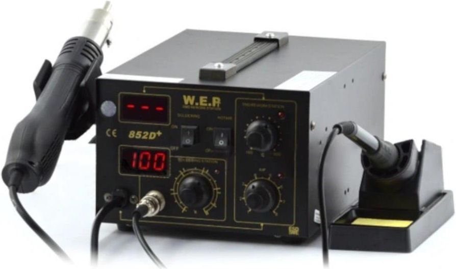 Stacja lutownicza HOTAIR WEP 852D+ 2w1 hot air i kolba grotowa ta wersja na wentylatorze 120l !! wersje z kompresem na innych naszych aukcjach Kupując u nas w HOTAIR Robert Mazurek przedstawiciela marki WEP masz pewność gwarancji oraz jakości sprzedawanych produktów. Jesteśmy polską firmą działającą od 2011r Oficjalny przedstawiciel producenta stacji lutowniczych WEP Stacja lutownicza 2w1 - HOTAIR i lutownica grotowa na najpopularniejsze na rynku groty 900M⚡ Niski pobór mocy z uwagi na wentylator ⚡ 2 czytelne wyświetlacze Kultowa dopracowana konstrukcja gwarantująca bezawaryjność ⚡ Płynna regulacja temperatury Hot Air: 100 - 500°C ⚡ Płynna regulacja grotowej:100 - 500°C Kolba hot air po odłożeniu wychładza się i przechodzi w stan czuwania jest przygotowana do pracy. Większa wydajność kolby na gorące powietrze aż 120L dzięki wentylatorowi ⚡ Cichsza praca ze względu na umieszczoną dmuchawę w kolbie Stacja lutownicza HOTAIR WEP 852D+ to zaawansowane urządzenie łączące funkcje nadmuchu gorącego powietrza oraz lutownicy grotowej. Nadmuch powietrza jest realizowany przez wentylator, co zapewnia większą moc nadmuchu, wyższą kulturę pracy oraz niższe koszty eksploatacji. Dzięki dużej mocy elementów grzejnych oraz precyzyjnemu odczytowi temperatury, stacja szybko i skutecznie radzi sobie nawet z najtrudniejszymi zadaniami lutowania. Stacja cieszy się renomą jako najlepsze urządzenie na rynku, wyróżniając się jakością i trwałością, przewyższając w tych aspektach konkurencyjne produkty. HOTAIR jako bezpośredni importer i dystrybutor marki WEP, zapewniamy serwis, wsparcie techniczne oraz najniższe możliwe ceny. W ofercie posiadamy pełen zestaw akcesoriów, takich jak dysze, grzałki oraz części zamienne. Marka WEP wyróżnia się największym wyborem dysz. U nas znajdziesz także akcesoria lutownicze jak chemia, maty, topniki, pasty i uchwyty, które ułatwią pracę i zapewnią profesjonalne rezultaty Stacja lutownicza WEP 852D+ została zaprojektowana z myślą o spełnieniu wysokich wymagań serwisu elektronicznego. Konstrukcja jest przemyślana i sprawdzona dzięki długoletniej obecności tego modelu na rynku. Wyróżnia się stabilnym i mocnym zasilaniem opartym na transformatorze oraz sterowaniem za pomocą kontrolera PID. Zarówno stacja Hotair, jak i lutownica grotowa mogą pracować niezależnie. Stacja Hotair jest wyposażona w system automatycznego schładzania elementu grzejnego po odłożeniu na uchwyt, co znacznie wydłuża jego żywotność i zapewnia bezproblemową pracę przez długi czas. Dwa wyświetlacze LED pokazują zadaną wartość temperatury oraz jej rzeczywistą wartość w trakcie pracy lutownicy, co ułatwia precyzyjną kontrolę i przynosi doskonałe efekty. Funkcje i możliwości Lutowanie elementów elektronicznych Spawanie plastików Nagrzewanie i skraplanie koszulek termokurczliwych Rozmrażanie zamrożonych części Rozpuszczanie klejów i lutów Opalanie i usuwanie farb Naprawy w serwisie elektronicznym wiążą się z wieloma zagrożeniami zarówno dla naprawianych elementów, jak i dla serwisanta. Stacja lutownicza zapewnia najwyższe standardy bezpieczeństwa i jest zaprojektowana zgodnie z normami ESD Safe. Kolba lutownicza wyposażona jest w bezszczotkowy wentylator o miękkim starcie i dużej trwałości, co zapewnia moc nadmuchu do 120 L/min oraz wysoką niezawodność. W kolbie znajduje się element grzejny na ceramicznym szkielecie, zbudowany z grubego drutu osłoniętego mikką, co chroni przed przypadkowym zwarciem z obudową. Grzałka gwarantuje błyskawiczne nagrzewanie do zadanej temperatury, umożliwiając sprawną pracę z elementami elektronicznymi oraz komfortowe spawanie plastików. Kolba gorącego powietrza ma standardowy rozmiar wylotu 22 mm, co zapewnia duży wybór dysz lutowniczych dostępnych na rynku. Dysze te pasują do modeli: Aoyue, PT, Hakko, Sunnko oraz wielu innych. Na innych naszych aukcjach można dokupić, aż 80 rodzajów dysz lutowniczych, w tym dysze BGA, PLCC, SIP, SOP, QFP oraz dysze do spawania plastików, takie jak BUT, Żelazko, Super Dysza i wiele innych. Dysze w naszej stacji wyróżniają się szczeliną, która umożliwia odprowadzenie nadmiaru cofanego powietrza, szczególnie przy wysokich temperaturach i niskim nawiewie. Takie rozwiązanie znacząco wydłuża żywotność elementu grzejnego oraz zapobiega jego przegrzewaniu, co jest rzadko spotykane u innych producentów. W zestawie ze stacją lutowniczą znajdują się wymienne dysze z szczeliną: Dysza okrągła 5 mm: do precyzyjnych operacji wymagających skupionego podgrzewania Dysza okrągła 7 mm: do podgrzewania większych obszarów równomiernie. Dysza kwadratowa 12x12 mm: do układów BGA . Kolba lutownicza model WEP 907A to sprawdzona i popularna kolba, charakteryzująca się łatwą dostępnością części eksploatacyjnych, takich jak element grzejny i groty. Kolba używa grotów typu 900M, które są szeroko dostępne na rynku — oferujemy aż 90 rodzajów, w tym grot minifala. Praca serwisowa wymaga wykonywania wielu czynności, dlatego dobrze zaprojektowane podstawki są niezwykle przydatne. Umożliwiają one bezpieczne odkładanie kolb lutowniczych oraz wygodne czyszczenie grotu lutowniczego. Chwytak Pęseta Igiełkowa Podnośnik dla Serwisu Przydatne narzędzie służące do: usuwania elementów IC podnoszenia małych przedmiotów, układów BGA, układów scalonych demontaż układów SMD precyzyjnej pracy w miejscach gdzie nie można zastosować klasycznej pęsety podnoszenia gorących elementów przenoszenia i umieszczania na płytach PCB układów lutowania i rozlutowania Specyfikacja techniczna: Długość całkowita: 143 mm (± 2mm) Długość elementu chwytnego: 51 mm (± 2mm) Szerokość elementu chwytnego: 29 mm (± 2mm) Średnica rączki: 1 cm (± 1mm) Wykonanie: Tworzywo antystatyczne Stacja lutownicza WEP 852D+ charakteryzuje się Zasilanie: 230 V AC ± 10% Re