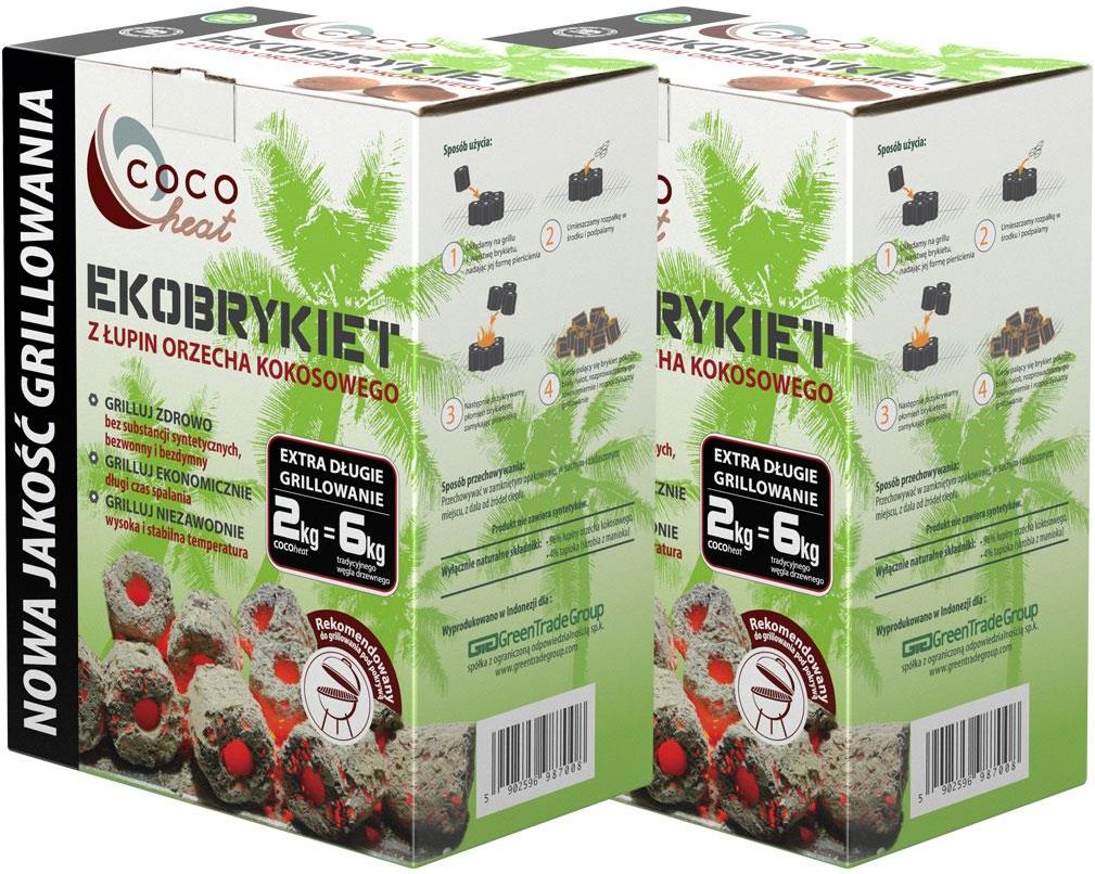 COCOHEAT to w 100% naturalne ekobrykiety wytwarzane z łupin orzecha kokosowego. 2kg ekobrykietu = 6kg tradycyjnego węgla drzewnego. Szczególnie polecane do wydajnego i zdrowego grillowania mięs, owoców morza, warzyw, pizzy i ciast. Rekomendowany do zdrowego grillowania metodą pośrednią (w grillach …