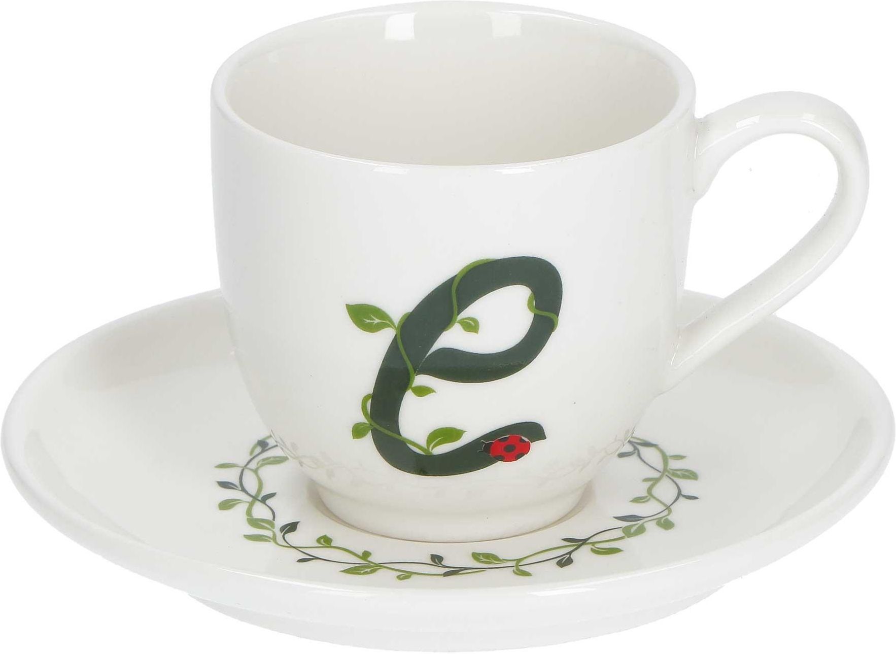 Filiżanka ze spodkiem "E" o pojemności 90 ml Solotua to prawdziwa perełka w świecie porcelany. To delikatna i elegancka filiżanka z literą.