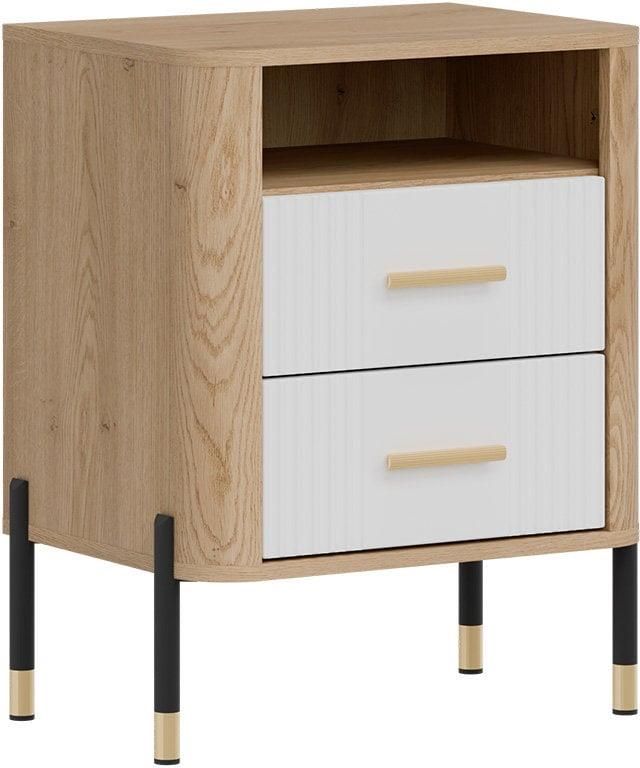 Liveo Szafka Nocna Dante Dt22 2S Dąb Cremona Torro / Biały Mat Złoty Uchwyt 74Cm Rawa Mazowiecka