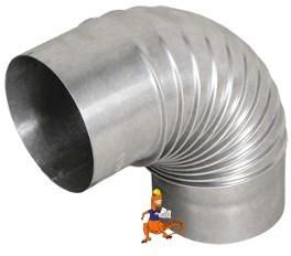 Kolano Fal śr. 100 mm, marki Bertrams. Jest to kolano o stałym kącie zgięcia 90 stopni, zawijane na zakładkę. Przeznaczone do odprowadzania spalin z urządzeń opalanych gazem lub olejem opałowym do przewodów kominowych. Wykonane z czarnej blachy stalowej aluminizowanej. Odporność termiczna 400 stopni C.