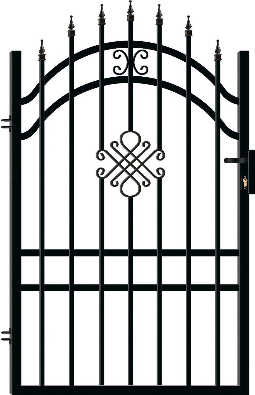 Furtka lewa Greta Lux3, ocynkowana, kolor czarny półmat struktura - Szerokość całkowita: 105 cm, wysokość 175 cm. Szerokość w świetle słupków: 113 cm. Profil sztachetki: 18x18. Furtka zawiera w zestawie: szyld, zamek, klamkę, wkładkę z kluczykami oraz nowoczesne przykręcane zawiasy (nowość!). Furtka Greta Lux 3 posiada bogate zdobienia, wygląda niezwykle okazale. Bardzo ciekawy matowy kolor czarny jest nietypowy na rynku ogrodzeń. 5 lat gwarancji.Furtka nie zawiera słupków w zestawie.
