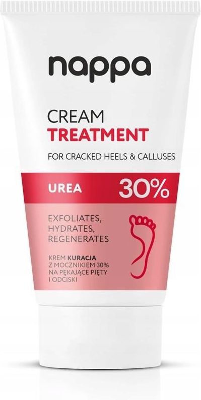 Nappa Podologiczny zmiękczający krem do stóp UREA 30% mocznika 150ml Piękne i zadbane stopy to nie tylko komfort, ale też pewność siebie, która pozwala poczuć się swobodnie, niezależnie od sytuacji. PODOLOGICZNY Krem do stóp KURACJA na pękające pięty i odciski Ilość: 1 sztuka mocznik: 30% Pojemność: 150ml _____________________________________ NAPPA Krem KURACJA na pękające pięty i odciski to zmiękczający krem do stóp z mocznikiem o stężeniu 30%. Krem KURACJA skutecznie złuszcza i intensywnie nawilża skórę stóp, a także chroni mikrobiom skóry przed działaniem patogenów. Kompleks ziołowy zawarty w kosmetyku dodatkowo wspomaga regenerację, łagodzi i odświeża skórę stóp. Przyjemny zapach produktu umila jego każdorazowe stosowanie. Krem przeznaczony jest do częstego stosowania, w celu długotrwałego nawilżenia suchej skóry i podtrzymania efektów pielęgnacyjnych. Linia kosmetyków podologicznych NAPPA Główną ideą linii NAPPA jest kompleksowa opieka nad skórą Twoich stóp. Szeroka gama produktów zapewnia zarówno bogaty wybór kosmetyków do codziennej pielęgnacji, jak i skuteczne rozwiązania dla tych, którzy potrzebują czegoś do zadań specjalnych. Niezależnie od Twojego trybu życia, wieku i typu skóry, nasza misja brzmi zawsze tak samo: troska na każdym kroku. Nappa krem nawilżający do stóp _______________________________ Intensywnie nawilża skórę pięt, zabezpieczając ją przed pęknięciami. Wspomaga regeneracje skóry stóp. Chroni skórę przed czynnikami zewnętrznymi, działa antyseptycznie. Złuszcza martwy naskórek. Wspomaga regenerację skóry. Szybko się wchłania dając efekt relaksu, ulgi i ukojenia. _______________________________ Innowacyjna formuła zawiera przyjazne dla skóry postbiotyki. Krem szybko się wchłania i jest przyjazny weganom. Zawiera mocznik – jeden z najskuteczniejszych składników keratolitycznych Zmiękczający krem do stóp można używać do skóry normalnej, suchej oraz podrażnionej. Składniki aktywne _______________________________ Ekstrakt ziołowy z babki lancetowatej, żywokostu lekarskiego i drzewa sandałowego – ma działanie regenerujące i przeciwzapalne, łagodzi podrażnienia oraz odświeża skórę. Mocznik 30% – złuszcza i intensywnie nawilża, wspomaga regenerację skóry i ją wygładza. Gin Toniq – postbiotyk, innowacyjny składnik pochodzenia naturalnego, powstały na skutek procesów fermentacyjnych – chroni mikrobiom skóry, działa nawilżająco i kojąco. Bisabolol – naturalny składnik olejku eterycznego z rumianku, który działa przeciwzapalnie, regeneruje, łagodzi podrażnienia, nawilża i wygładza skórę. Woda lodowcowa – bogata w minerały, nawilża i uelastycznia skórę, sprawdzi się przy pielęgnacji skóry wrażliwej i alergicznej. Zastosowanie i Przeznaczenie _______________________________ Dla suchych pękających pięt, na odciski – Krem idealnie sprawdza się w pielęgnacji suchych, twardych stóp, szczególnie na piętach. Do profilaktycznej pielęgnacji – Krem nadaje się do regularnego stosowania, aby zapobiegać nadmiernemu rogowaceniu i utrzymywać stopy w doskonałej kondycji. Sposób użycia _______________________________ Aplikacja – Nałóż niewielką ilość kremu na czyste, suche stopy, w miejscach problematycznych. Stosuj raz dziennie wieczorem, nie dłużej niż 14 dni. Regularne stosowanie – Po ustąpieniu objawów stosuj krem profilaktycznie 1-2 razy w tygodniu. Dla przedłużenia efektu użyj innych kosmetyków z serii Nappa! Idealny rytuał pielęgnacji z kosmetykami Nappa Krok 1: Kąpiel w soli – Zanurz stopy w ciepłej wodzie z dodatkiem soli Nappa i pozwól, by napięcie dnia codziennego odpłynęło. Krok 2: Peeling lub maska złuszczająca – Wybierz peeling lub maskę złuszczającą Nappa, by pozbyć się martwego naskórka. Krok 3: Krem z mocznikiem – Dobierz stężenie mocznika do potrzeb swojej skóry: 5% – dla codziennego nawilżenia, 15% – gdy potrzebujesz zmiękczenia i ochrony, 30% – jeśli walczysz z pękającymi piętami. Krok 4: Spray ODPRĘŻENIE lub OCHRONA – Zakończ rytuał sprayem ODPRĘŻENIE lub sprayem OCHRONA. Skład: Aqua, Urea, Cetearyl Alcohol, Butyrospermum Parkii (Shea) Butter, Glycerin, Caprylic/Capric Trigliceride, Ceteareth-20, Glyceryl Stearate, Olus Oil, Prunus Amygdalus Dulcis Oil, Parfum, Phenoxyethanol, Sodium Benzoate, Potassium Sorbate, Bisabolol, Saccharomyces/Barley Seed Ferment Filtrate, Tetrasodium EDTA, Pterocarpus Santalinus Wood Extract, Symphytum Officinale Root Extract, Plantago Lanceolata Leaf Extract, Citric Acid, Citrus Aurantium Peel Oil, Limonene, Linalool, Cinnamal, Citral, CI19140, CI42051. Środki ostrożności Przechowywać w temp. poniżej 25°C. Chronić przed bezpośrednim działaniem promieni słonecznych. Nie stosować na uszkodzoną i podrażnioną skórę stóp. Produkt do użytku profesjonalnego. Wyłącznie do użytku zewnętrznego. Chronić przed dziećmi.