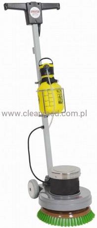 kod:202.001 kategoria: Jednotarczowe maszyny szorujące stawka vat: 23,00 % Napięcie sieciowe: 230 V / 50 Hz Moc: 250 W Liczba obrotów szczotek: 150 obrotów/min Maksymalna średnica tarczy: 13‘‘/ 330 mm Waga maszyny: 12,7 kg Długość kabla: 6 m Średnica talerza napędowego: 10 - 13‘‘ Wyposażenie kompletu: szczotka twarda (zielona: do podłóg i powierzchni twardych), szczotka miękka (czarna: do dywanów), talerz napędowy padów (padholder), zbiornik na płyn z wężem Przeznaczenie Łaźnie, spa, toalety, przebieralnie, schody, kafelki, wszelkie powierzchnie twarde i wykładziny. EEM 13R dzięki swojej kompaktowej budowie i prostej obsłudze idealne do czyszczenia małych powierzchni, nisz i kątów. Dzięki małej wadze urządzenia wynoszącej tylko 12,7 kg nadaje się także do użytku na schodach. Napęd mimośrodowy zapewnia efektywne czyszczenie i bezproblemowe, pewne prowadzenie maszyny bez wysiłku. Dzięki oprzyrządowaniu znajdującemu się w zestawie można czyścić powierzchnie twarde, polerować podłogi kamienne i parkiety oraz prać dywany. Duże gumowane koła umożliwiają wygodny transport bez pozostawiania śladów. Kompletna mechanika z metalu. Części mające kontakt z wodą są mosiężne. Wysokiej jakości mocny dyszel bez luzu umożliwia optymalną obsługę. Ergonomiczny, stabilny uchwyt z wbudowaną ochroną kabla sieciowego przed załamaniem. Cechy - mocny napęd mimośrodowy - kompaktowy w celu zapewnienia łatwej obsługi - pewne prowadzenie urządzenia bez użycia siły - kompletne oprzyrządowanie umożliwiające czyszczenie wszystkich powierzchni