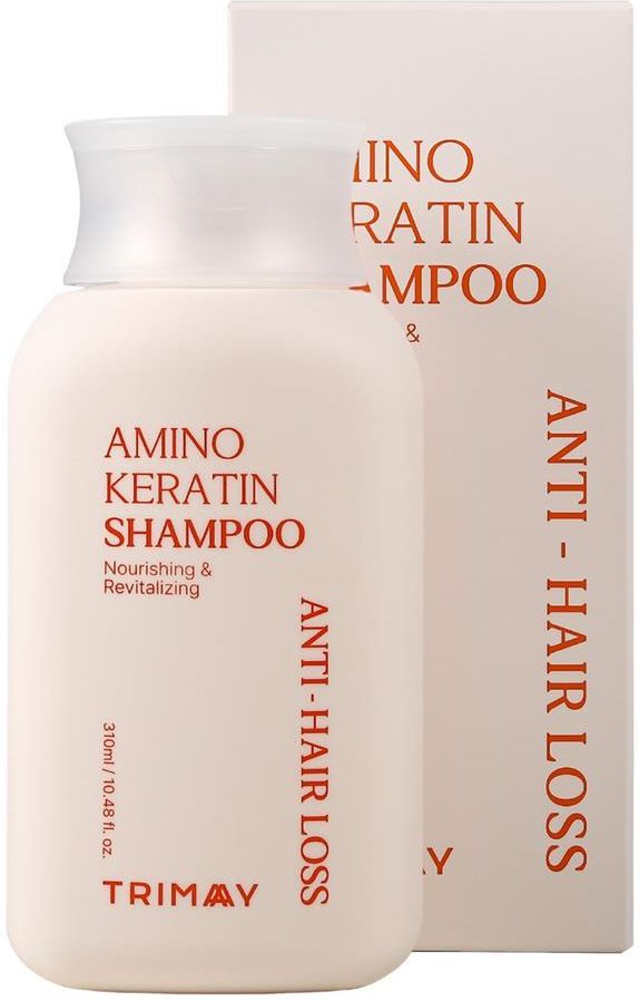 Trimay, szampon przeciw wypadaniu włosów Amino Keratin, to produkt kosmetyczny. Formuła szamponu zawiera aminokwasy oraz keratynę, które mają na celu wzmocnienie włosów oraz redukcję ich wypadania. Produkt jest przeznaczony do codziennego stosowania i zapewnia oczyszczenie oraz odżywienie włosów. Regularne stosowanie przyczynia się do poprawy kondycji włosów.