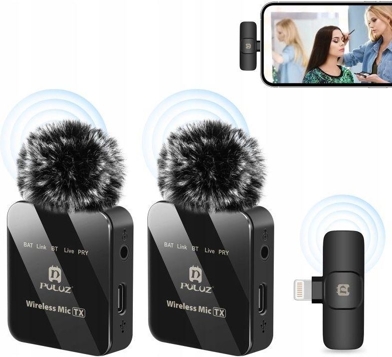 2x Bezprzewodowy Mikrofon Krawatowy do iPhone Lightning / Puluz PU647B Rawicz