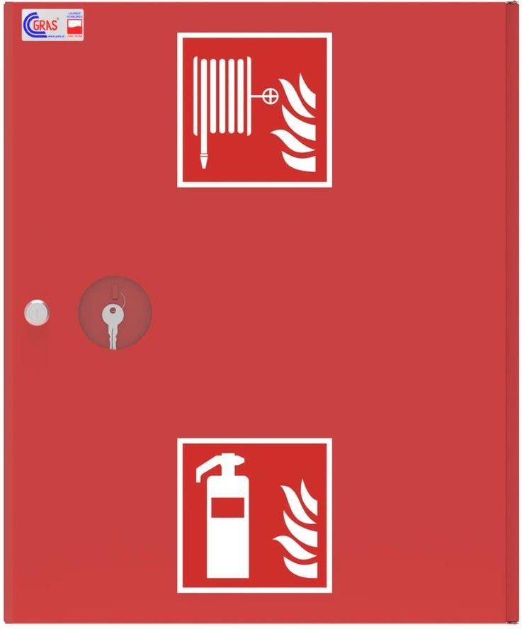 Gras Hydrant Wewnętrzny Dn52 Z Miejscem Na Gaśnicę, Natynkowy, Wąż Płaskoskładany L=20M, Czerwony Rawicz