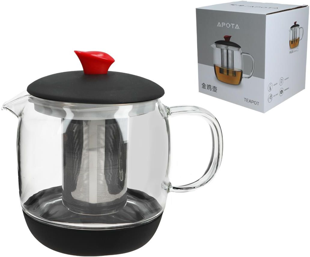 Szklany czajniczek z zaparzaczem. Doskonały na przyrządzenie herbatki na chłodne wieczory. Kolekcja: czajniki szklane Rozmiar: 880ml Opakowanie: szary karton Liczba sztuk w opakowaniu: 24 Podgrupa: czajniki Tematyka: zielarstwo, zdrowie EAN: 5905450821678