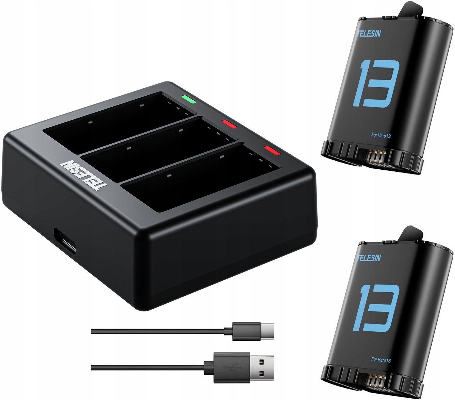 Ładowarka USB + 2x Akumulator Bateria do GoPro Hero 13 BLACK / TELESIN / S0-ECB-07-TGP Rawicz