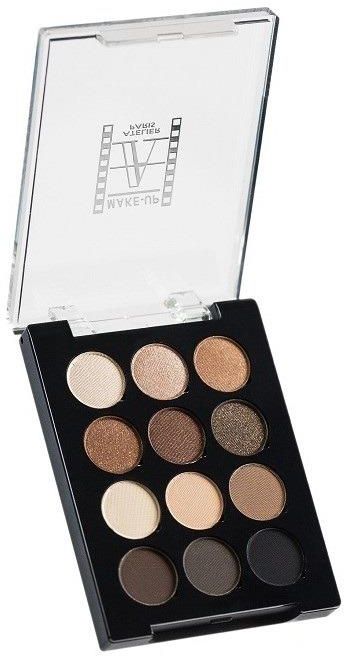 PALETTE 12 EYESHADOW marki Make-Up Atelier Paris. Zestaw 12 długotrwałych cieni do powiek. Posiadają wodoodporną formułę, wykonaną na bazie mineralnych proszków i pigmentów. Cienie cechują się wysokim stopniem pigmentacji oraz jedwabistą konsystencją, która bezproblemowo się rozprowadza. Produkt testowany dermatologicznie. Nie testowany na zwierzętach. Całość umieszczono w eleganckiej oraz wygodnej do przechowywania palecie.12 cieni do powiek.Intensywnie napigmentowane.Posiadają wodoodporną formułę.Nie testowane na zwierzętach.Idealne zarówno do dziennego, jak i okazjonalnego make-up'u.POSZCZEGÓLNE ODCIENIE:- kość słoniowa (opalizujący, perłowy),- brzoskwiniowy beż (opalizujący, perłowy),- ciemny beż (perłowy ze złotymi drobinami),- jasny brąz (perłowy ze złotymi drobinami),- kasztanowy brąz (perłowy ze złotymi drobinami),- ciemny brąz (perłowy ze złotymi drobinami),- biały (matowy),- jasny beż (matowy),- jasny, chłodny beż z szarymi tonami (matowy),- bardzo ciemny, chłodny brąz (matowy),- ciemnoszary (matowy),- czarny z granatowymi tonami (matowy).SPOSÓB UŻYCIA:Nakładać aplikatorem lub pędzlem do cieni.